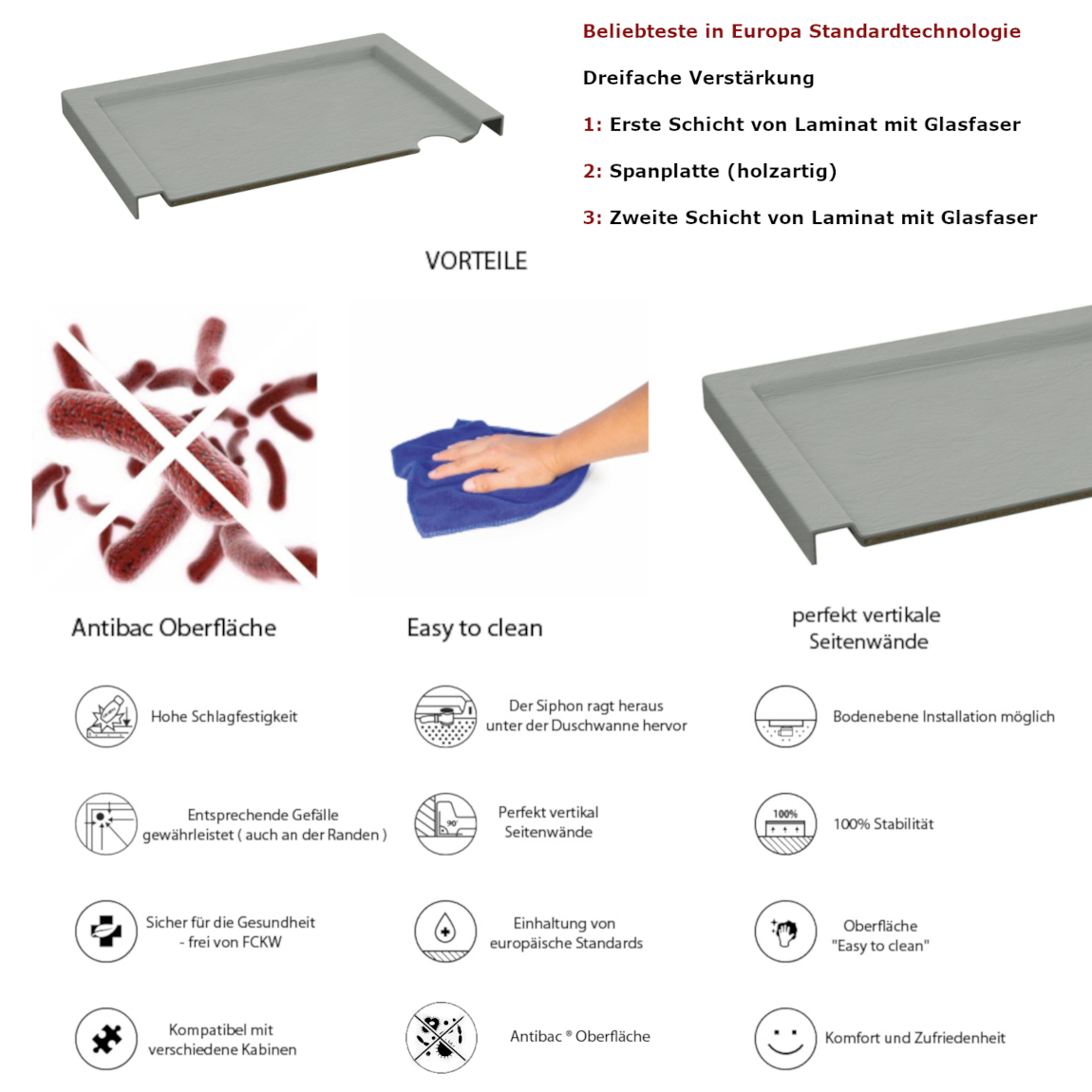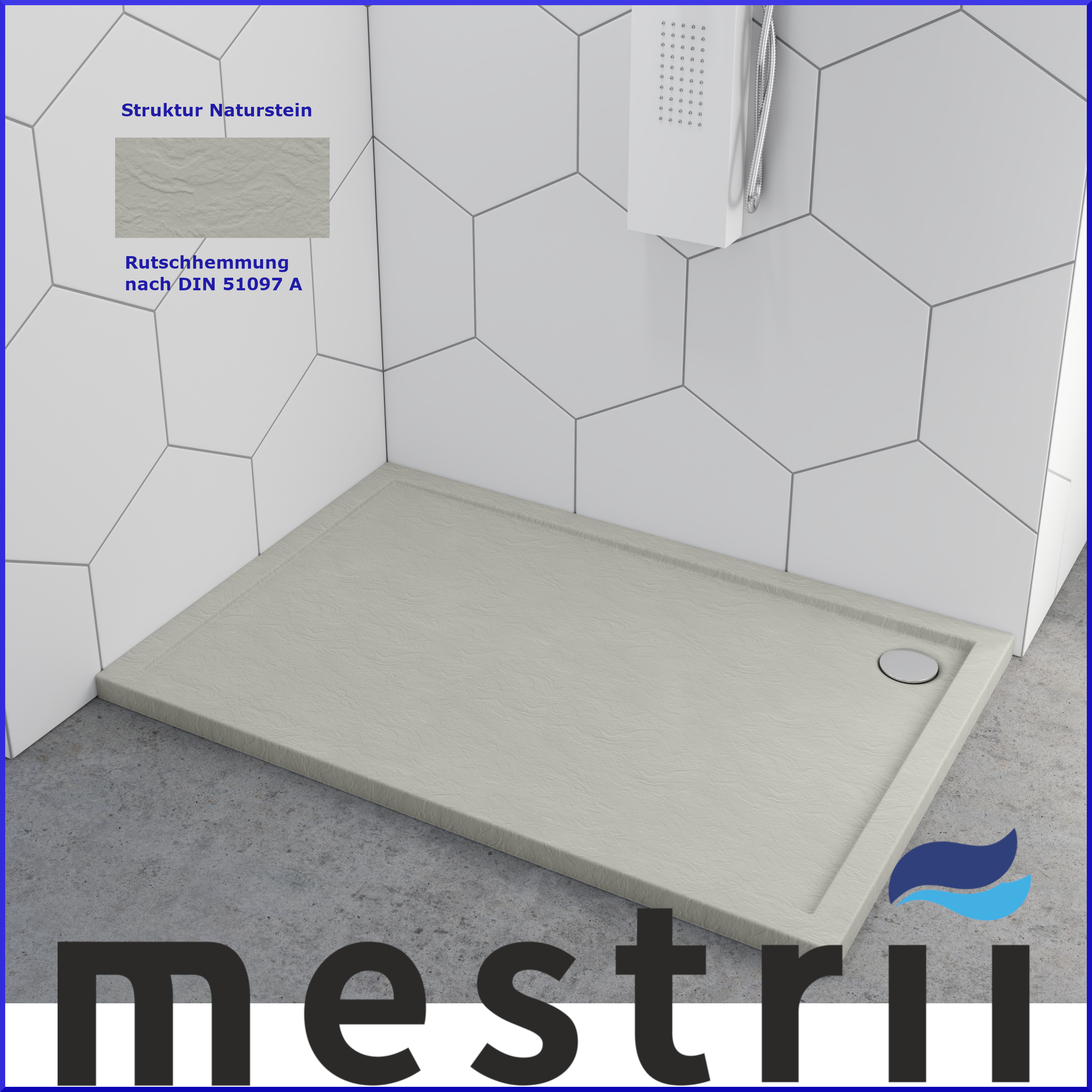 Duschtasse Duschwanne Grau Steinoptik Quadrat Rechteck Viertelkreis Fünfeck Cement Stone