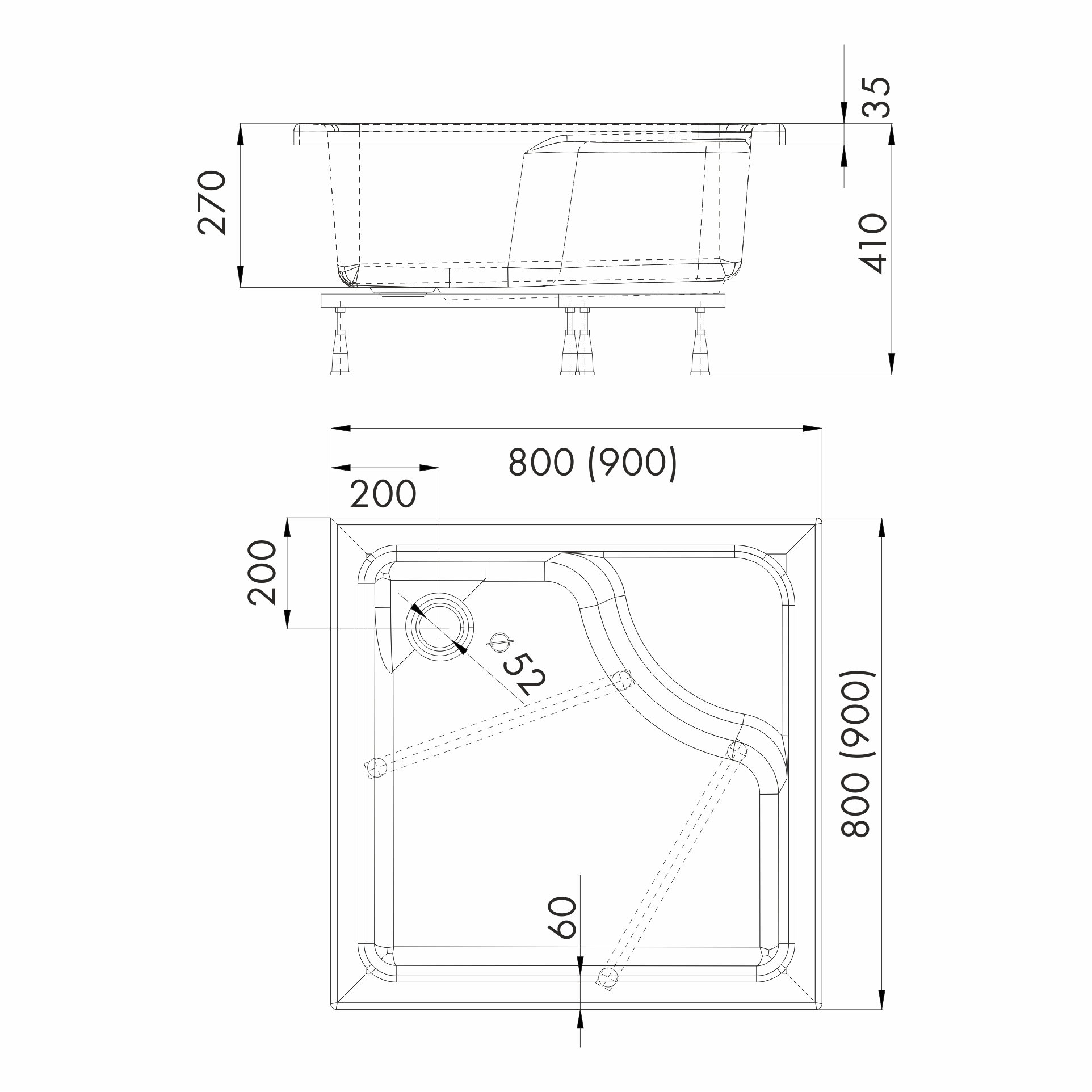 Startseite » Bad & Küche » Duschwannen » Quadratduschwannen » Acryl Duschwanne Dione 90x90x41 cm, quadratisch