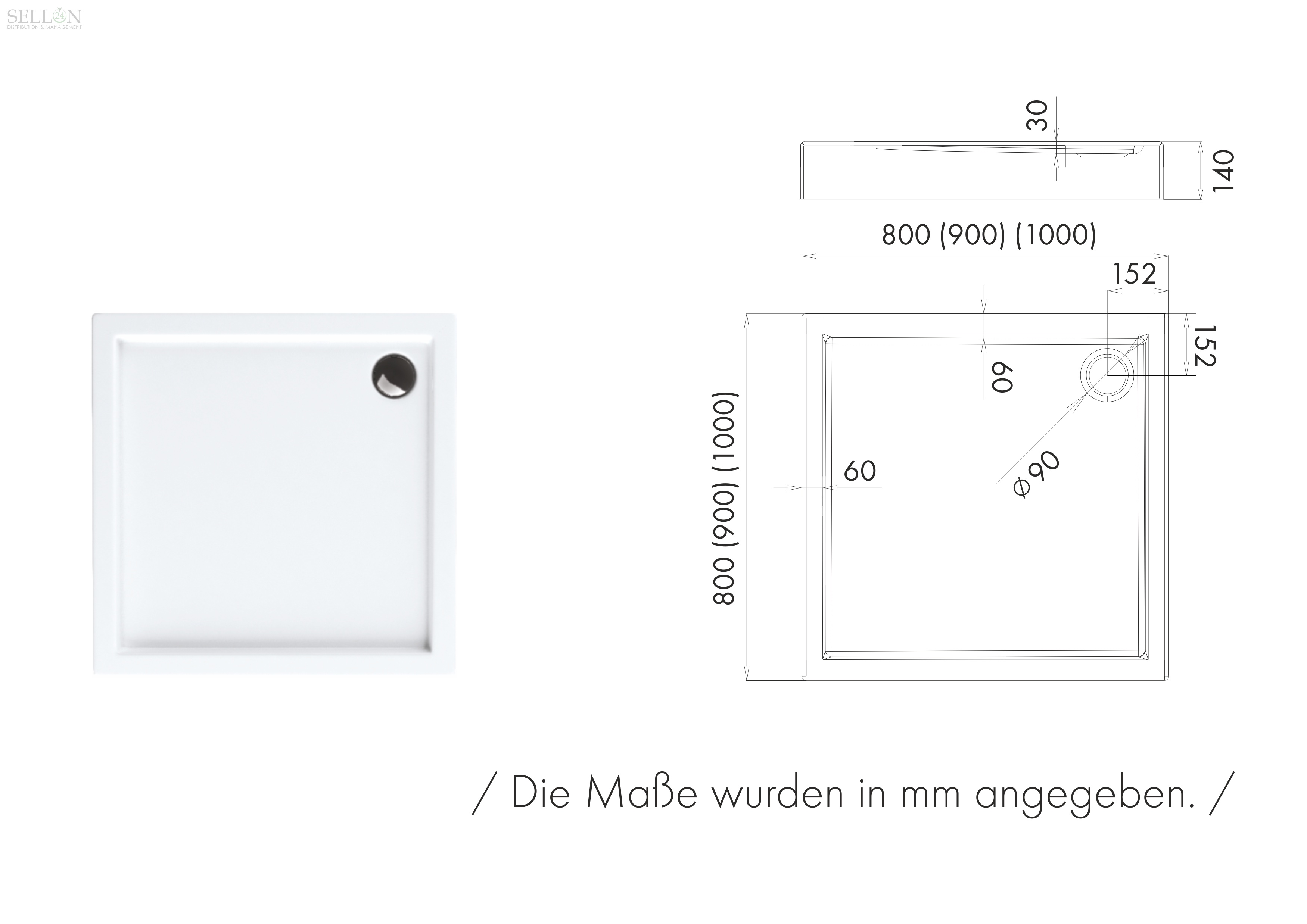 - Ablaufdurchmesser Ø 90mm - Ablaufgarnitur nicht im Lieferumfang (separat bestellbar)