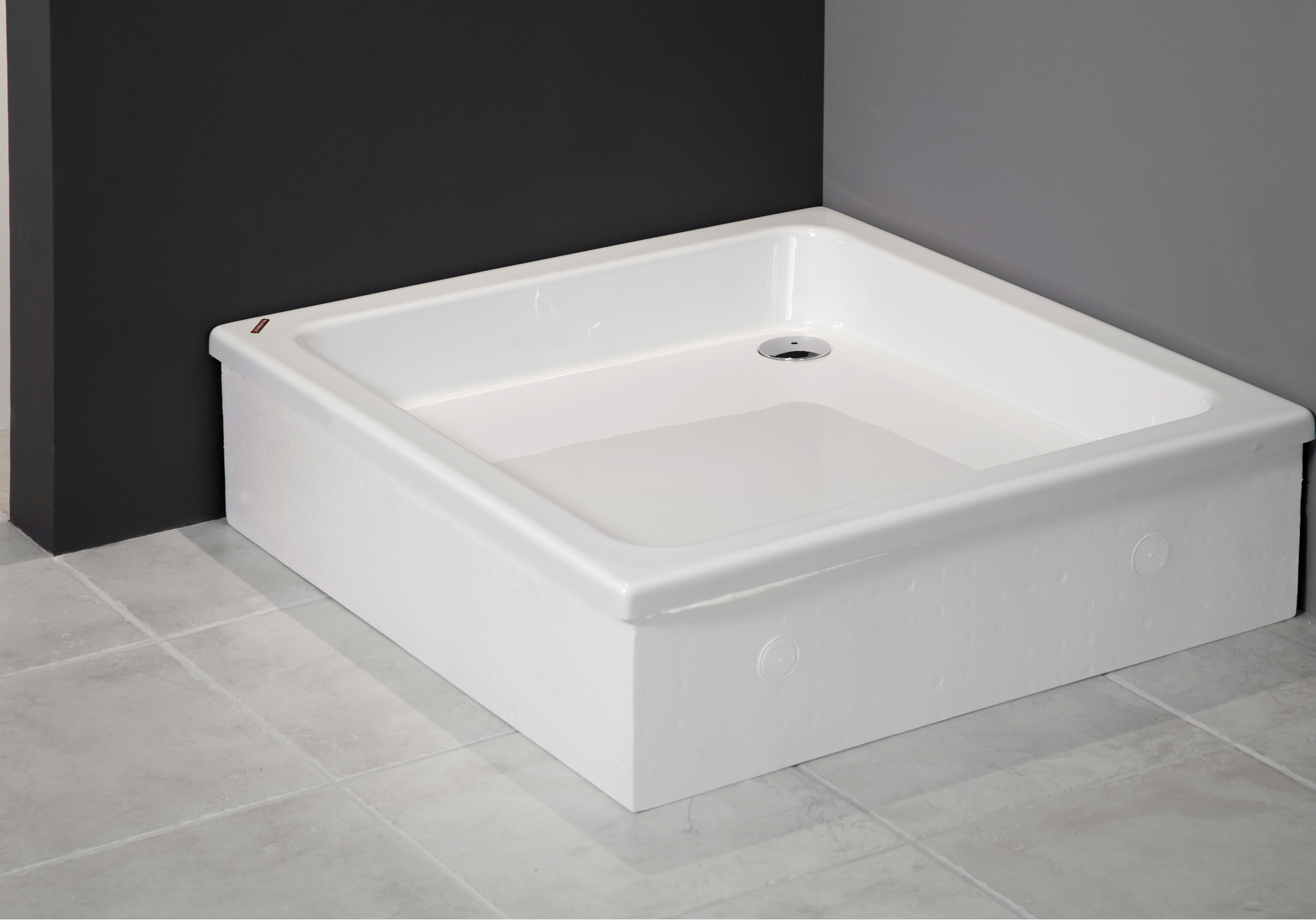 ♣ Eine moderne weiße Duschwanne der Serie "Siv" mit Styroporträger 80 x 80 x 26 cm
