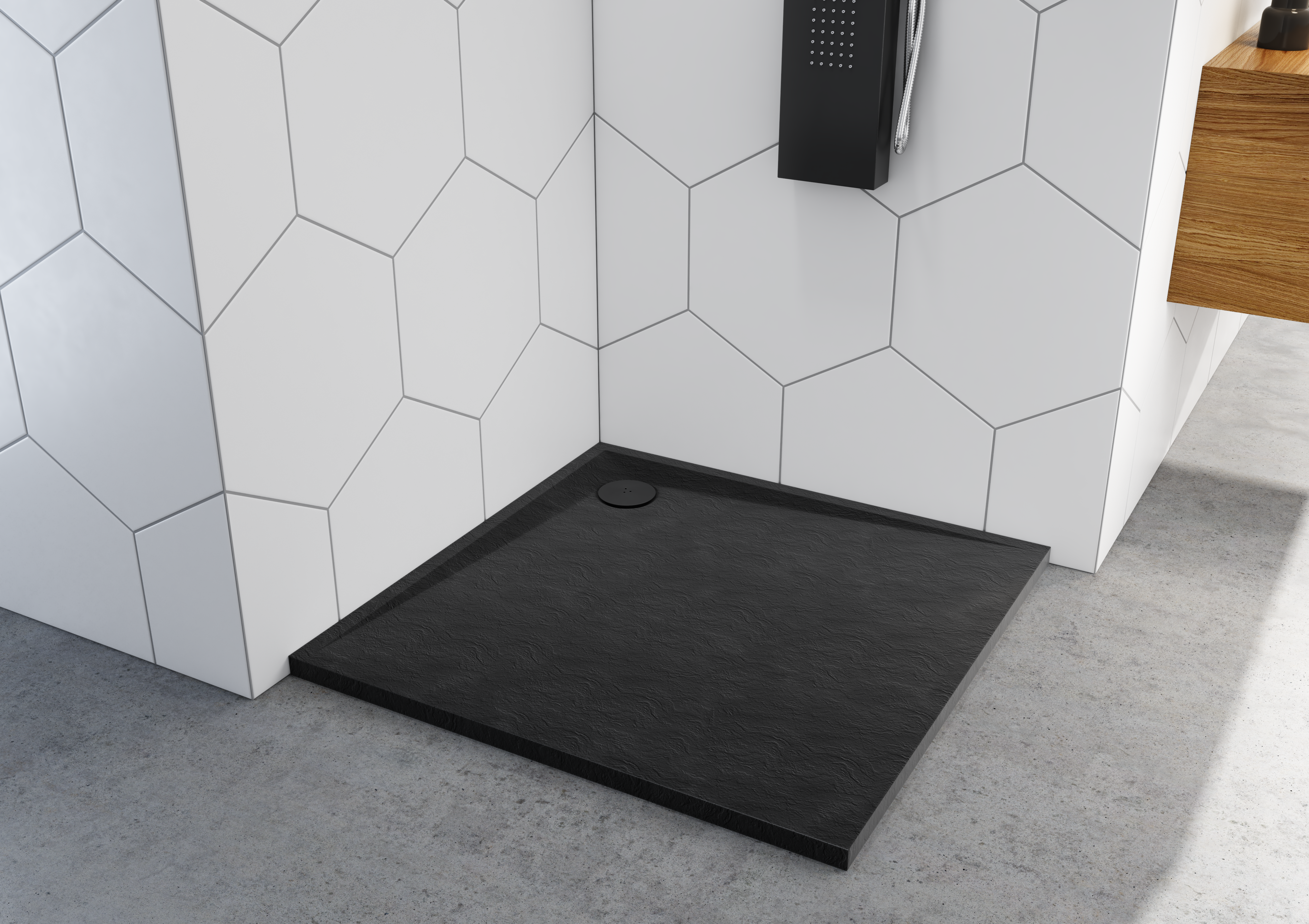 Stabilsound Plus Helio Verbundduschwanne Schwarz 90x90x3 cm, quadratisch