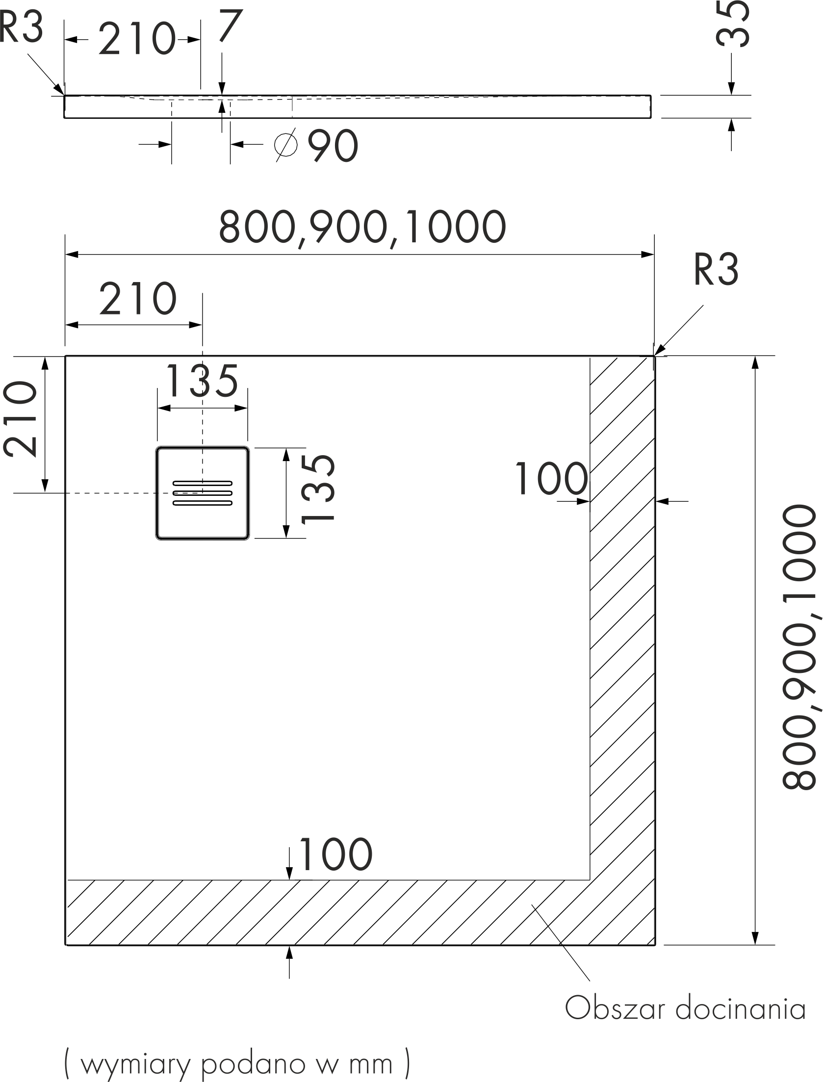 B x H x L: 90 x 3.5 x 90 cm