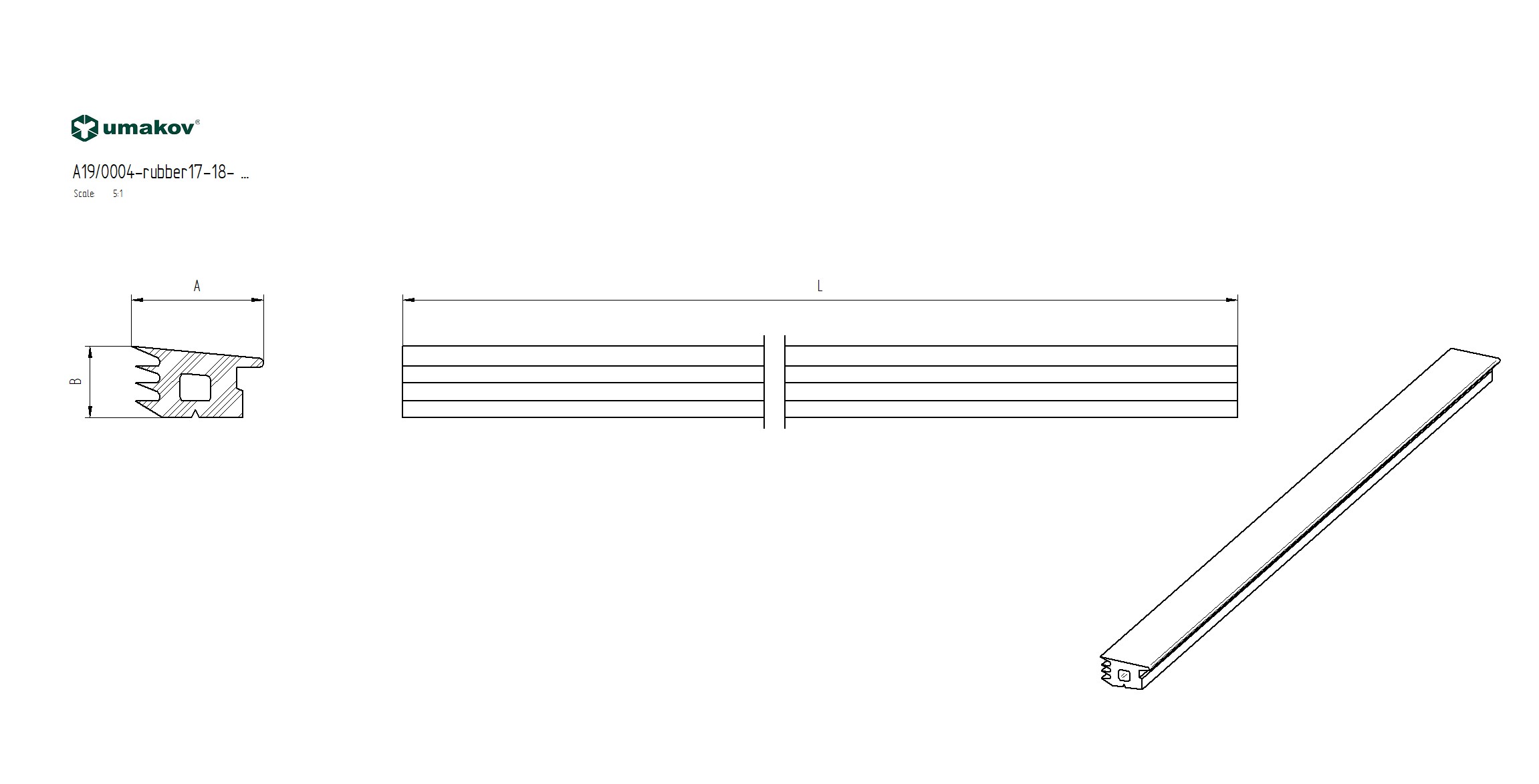 Material: EPDM, Glass t: 16,76-17,52, Farbe: Schwarz, L: 5000, Verwendung: Exterior, A: 15, B: 8,7