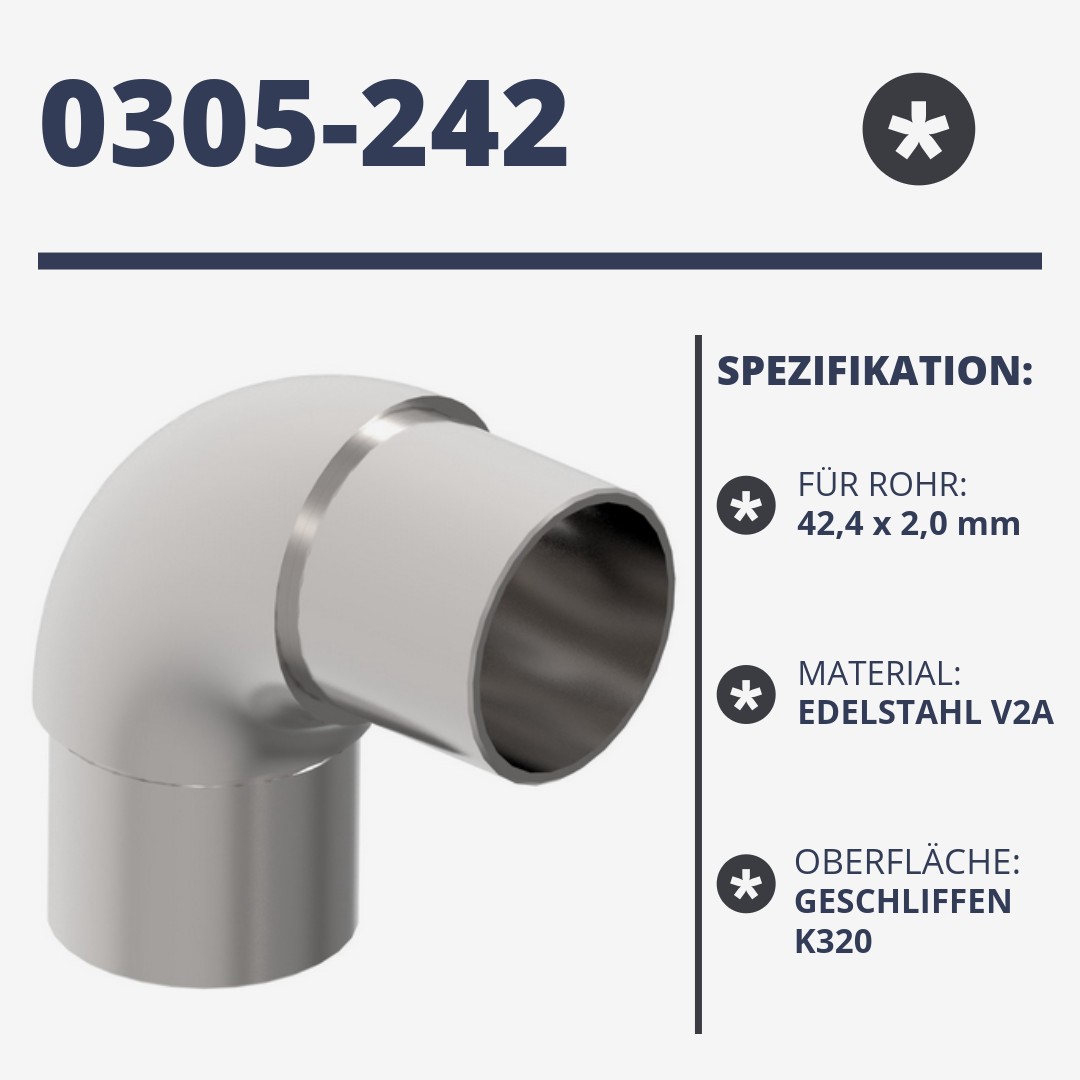 Edelstahl Geländer Handlauf Verbinder Steckfitting Bogen Rohrverbinder Endkappe