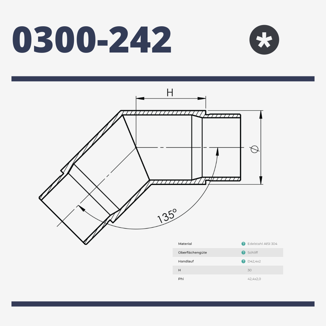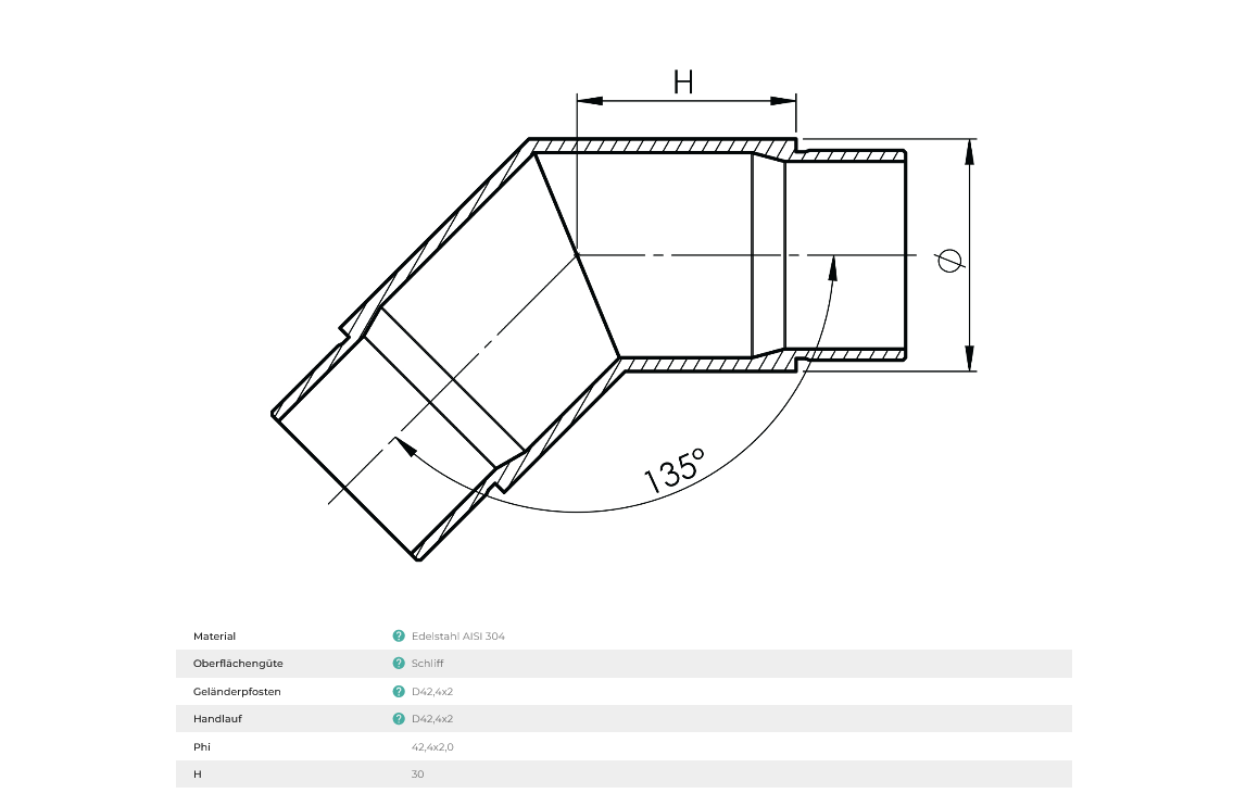 - Für Rohrdurchmesser Ø 42,4 x 2,0 mm