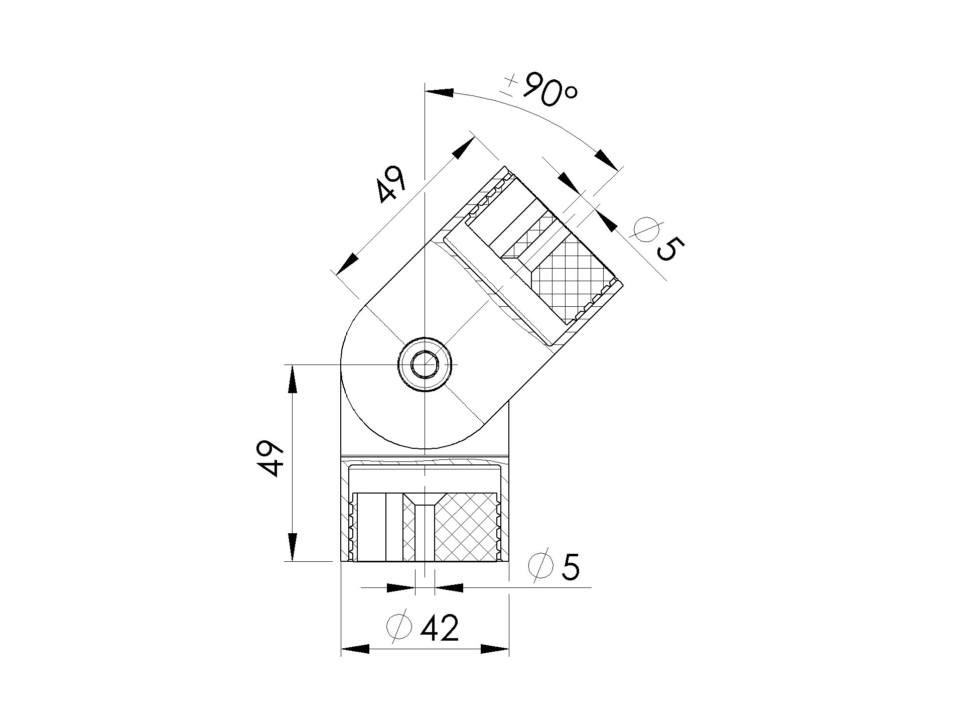 Startseite » Edelstahlkomponente » Geraden, Rohrverbinder » Gelenk Verbinder » Handlauf rund » Handlaufübergangsstück - stellbar