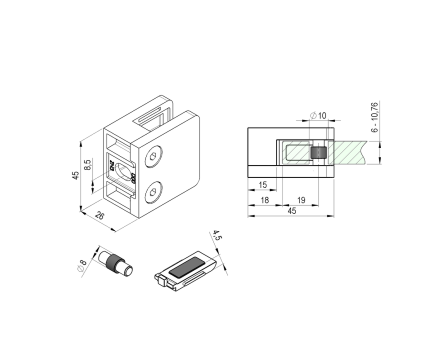 1x Glashalter Eckig Zamak Sicherungsplatte Glasklemme RAL Anthrazit