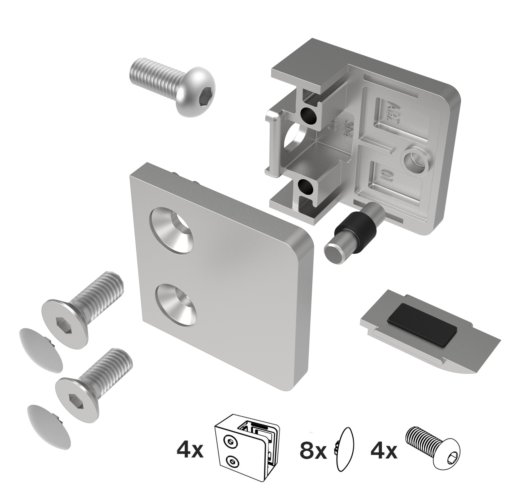 Startseite » Edelstahlkomponente » Glashalter für Pfosten » Glasklemmen Eckig » Modell-230P » Glasklemmen - set