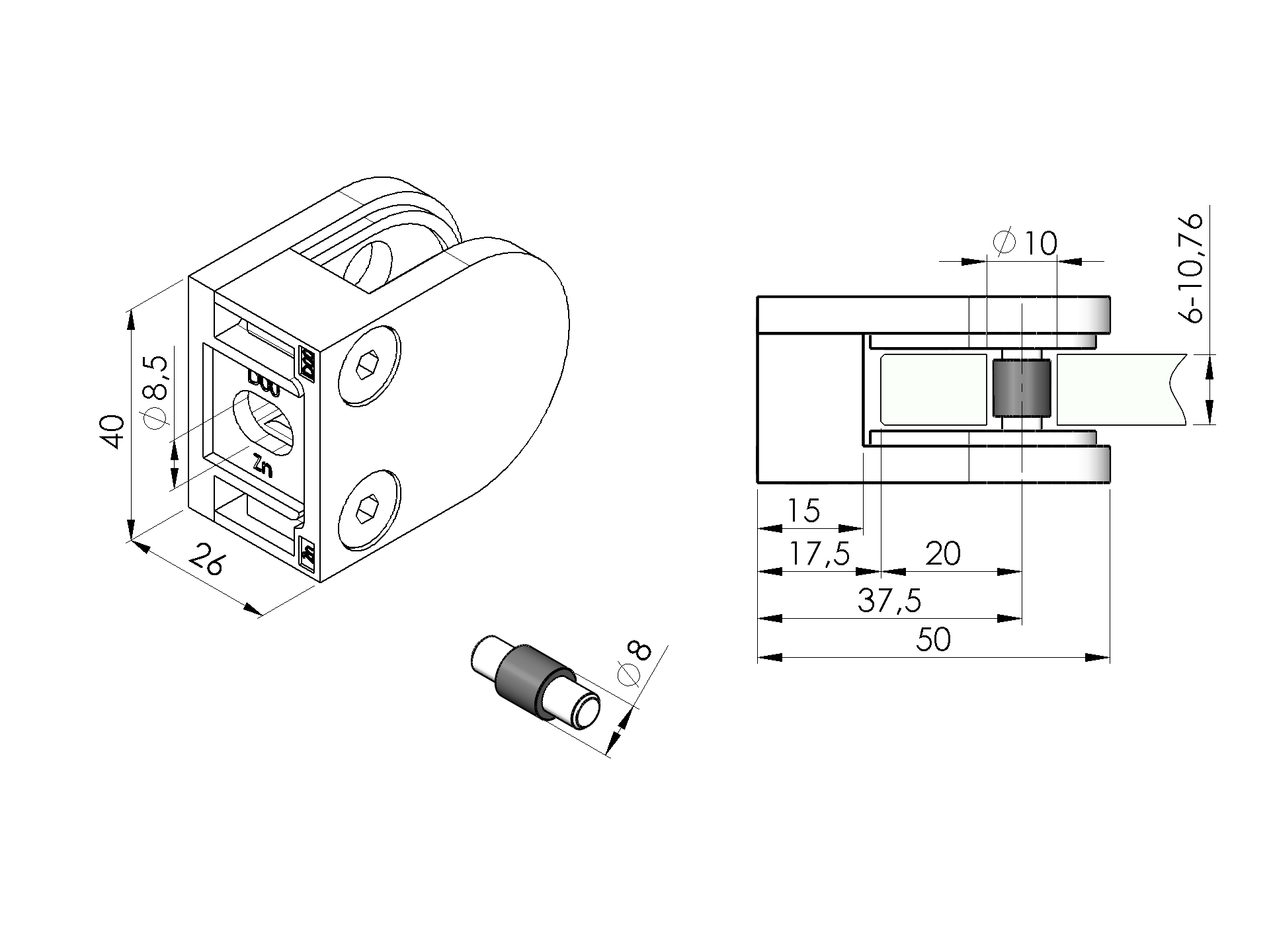 Startseite » Edelstahlkomponente » Glashalter für Pfosten » Glasklemmen Halbrund » Modell-20 » Glasklemmen
