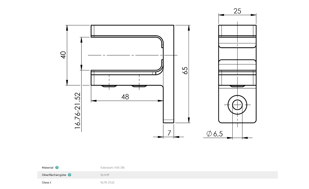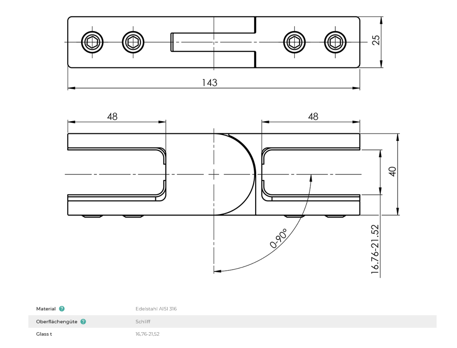 Edelstahl Glashalter Verbinder Gerade Winkel Ecke verstellbar 16,76-21 V4A V2A
