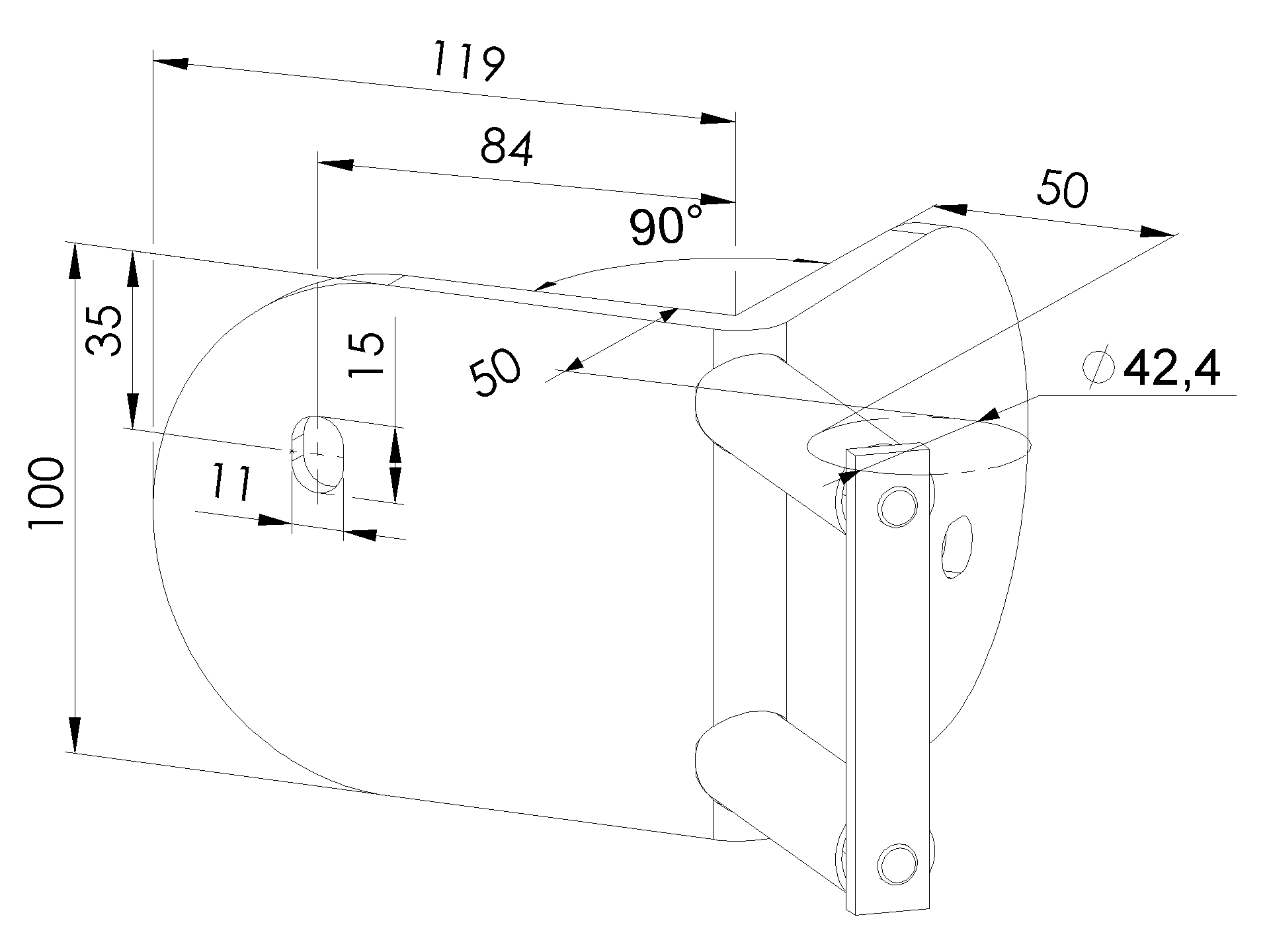 Eckrohrhalter - Wandanker, für Rohr D42,4mm, AISI 316, schliff K320.