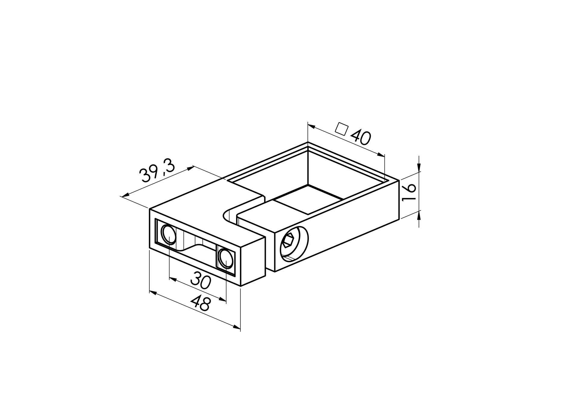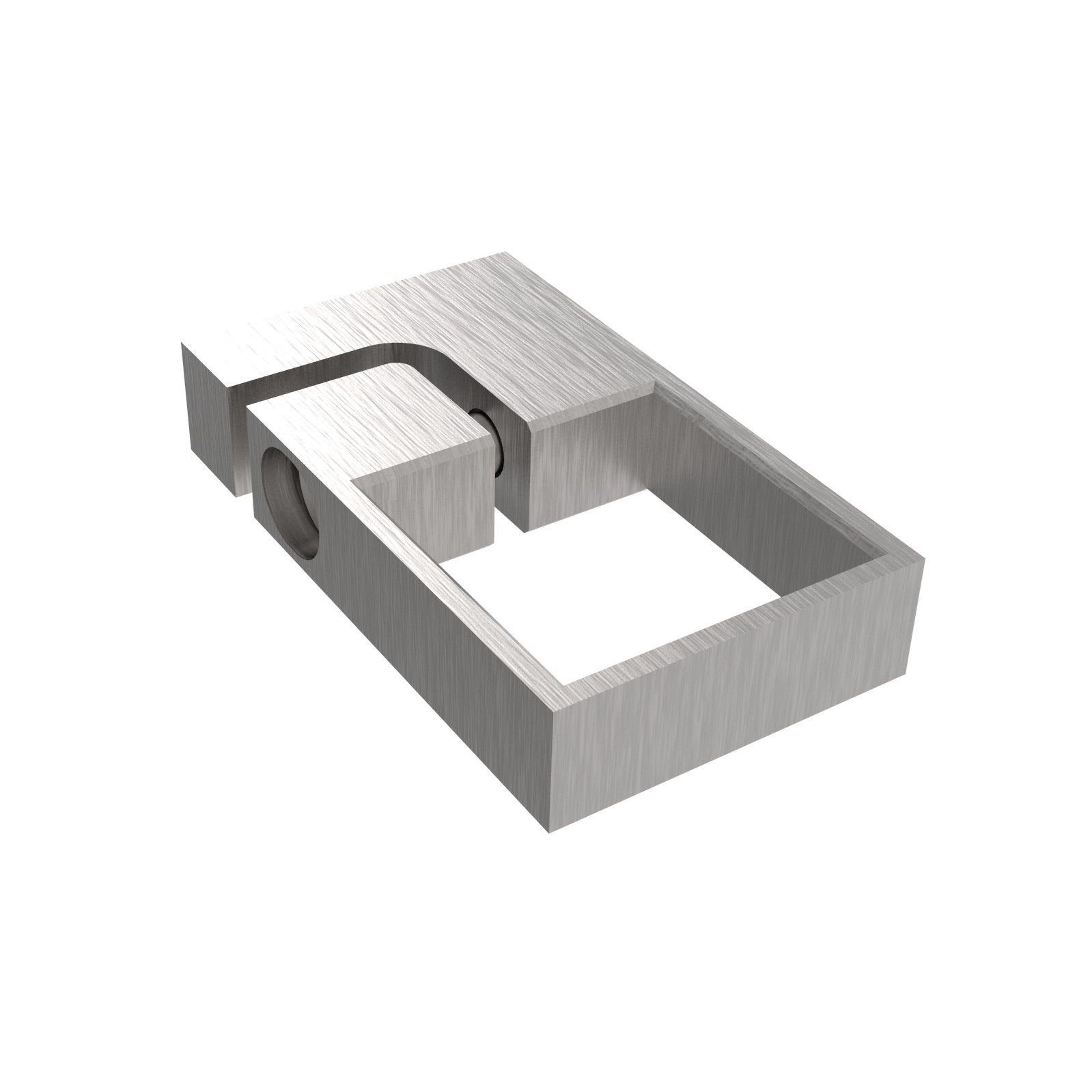 Hochwertiges Edelstahl Klemmstück für die seitliche Verankerung von Geländerpfosten. Das präzise gefertigte Element aus AISI 304 Edelstahl überzeugt durch seine korrosionsbeständigen Eigenschaften und die hochwertige K320 Oberflächenveredelung.