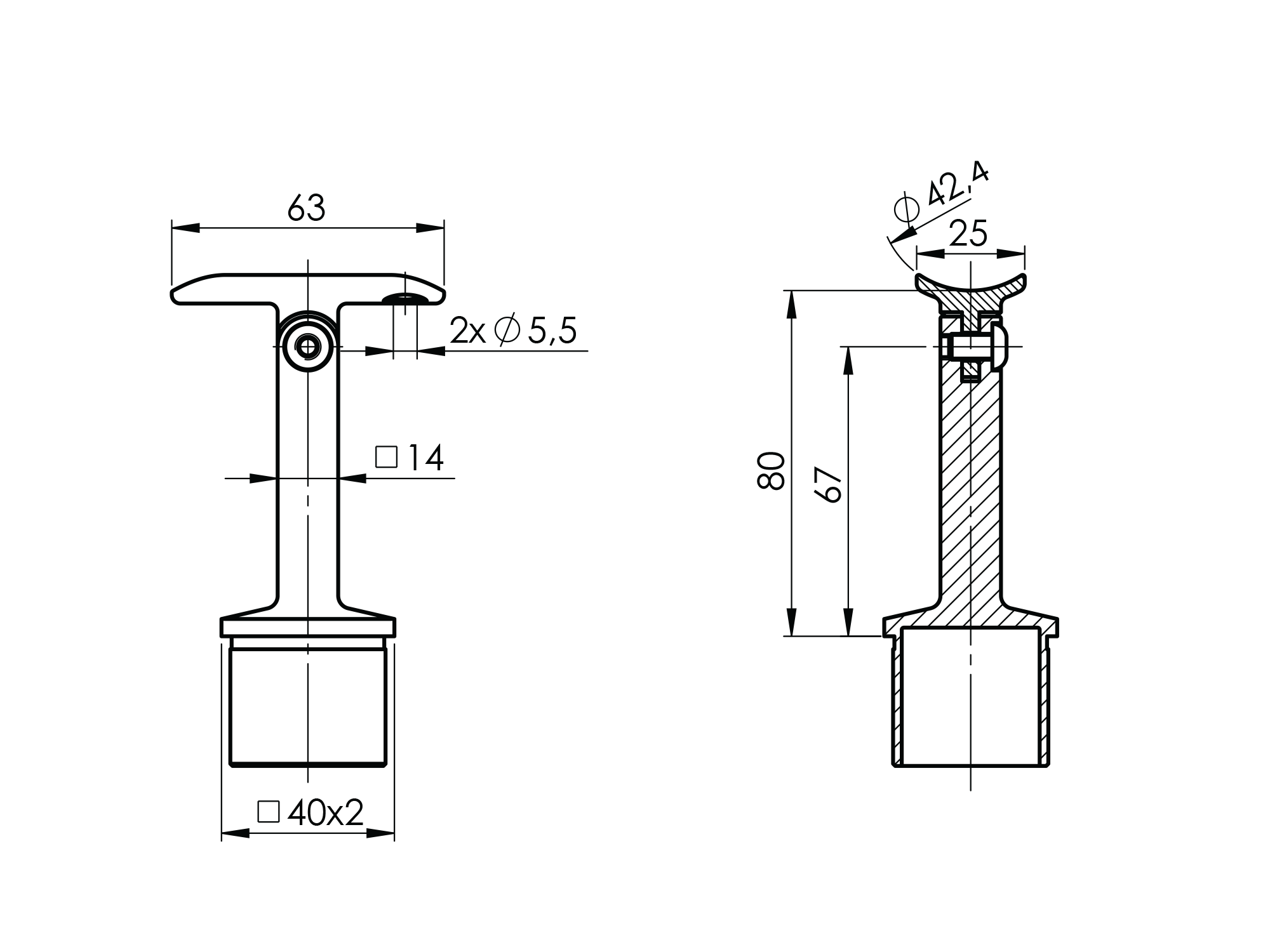 Startseite » Edelstahlkomponente » Handlaufhalter » für eckig Pfosten - axial » regulierbar » Handlaufstütze Edelstahl AISI 304 geschliffen Säulenhandlaufhalter 42.4mm