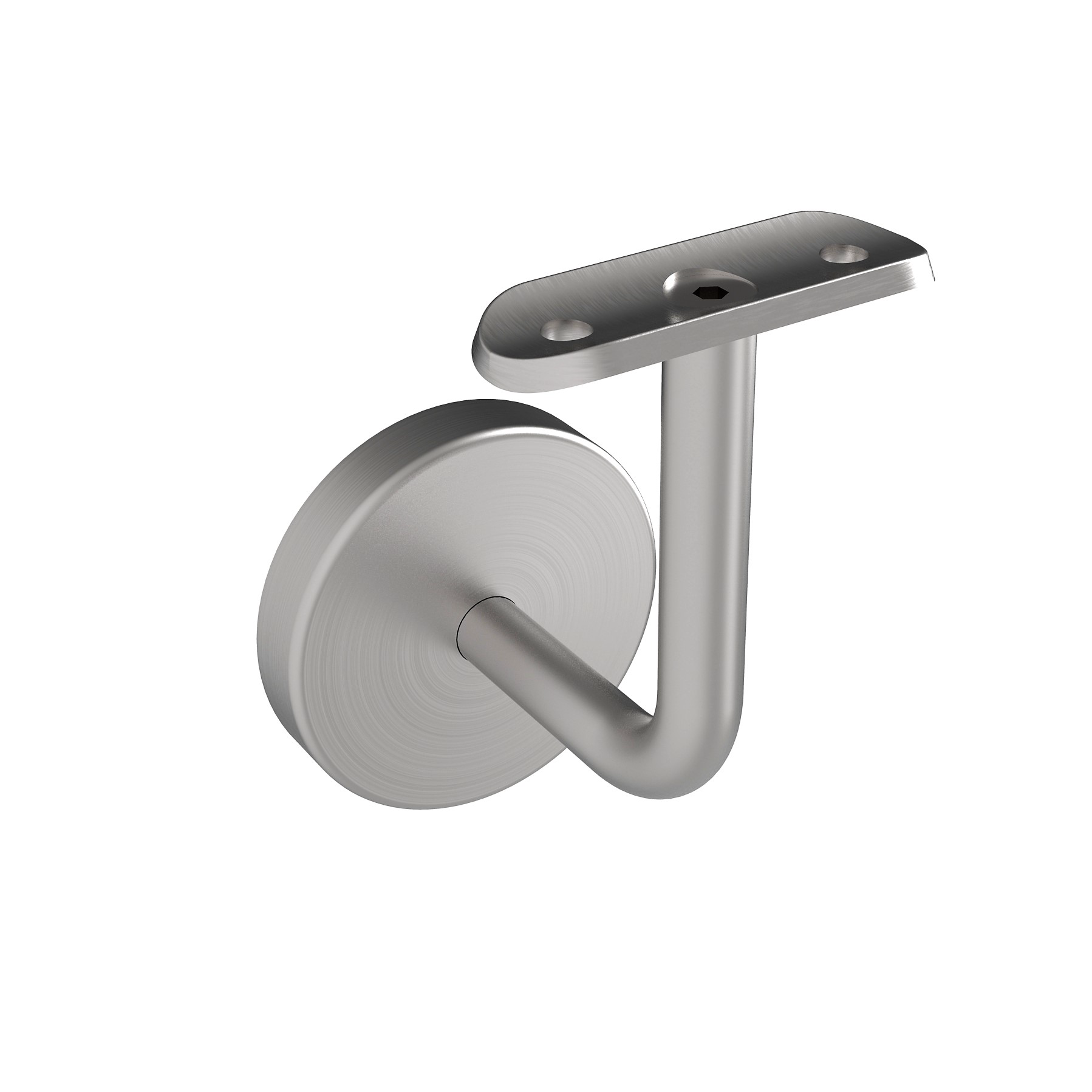 Handlauf-Wandhalter aus Edelstahl mit Abdeckrosette und fester Schale, Montagegelenk.