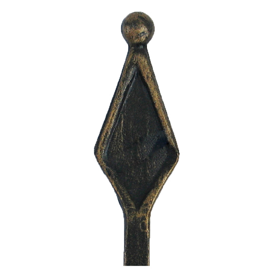 Startseite » Eisensortiment » Zierspitzen » Zierspitzen » Geschmiedete Zierspitze h120, b35, n12x12mm
