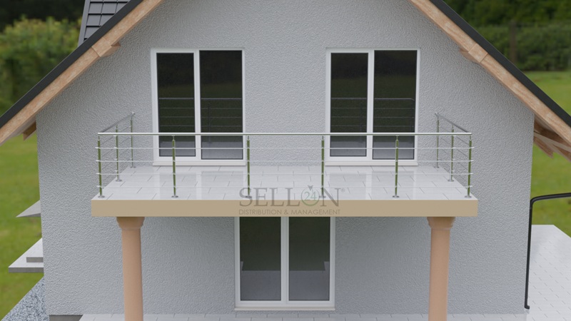Relinggeländer Edelstahl aufgesetzt Geländer Konfigurator Balkongeländer Treppengeländer Balkon Terrasse Boden Treppen Relingpfosten 42,4 mm V2A