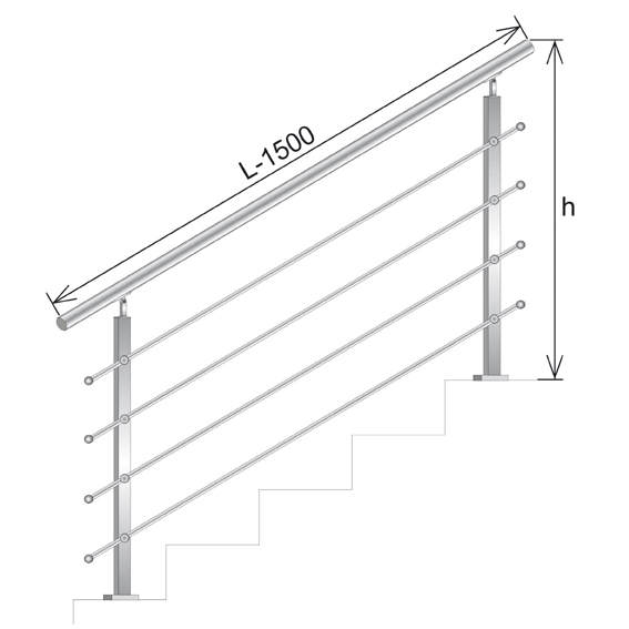 Startseite » Geländersystem » Geländer-Sets » Pfosten mit horizontaler Füllung » eckig, Treppenmontage, aufgesetzt » Relinggeländer - Edelstahl - Bodemontage -steigend