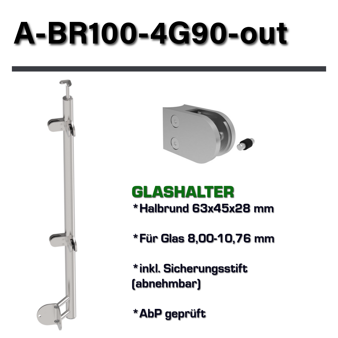 Geländerpfosten Ø42,4x2 mm inkl. Glashalter und Glasgummis