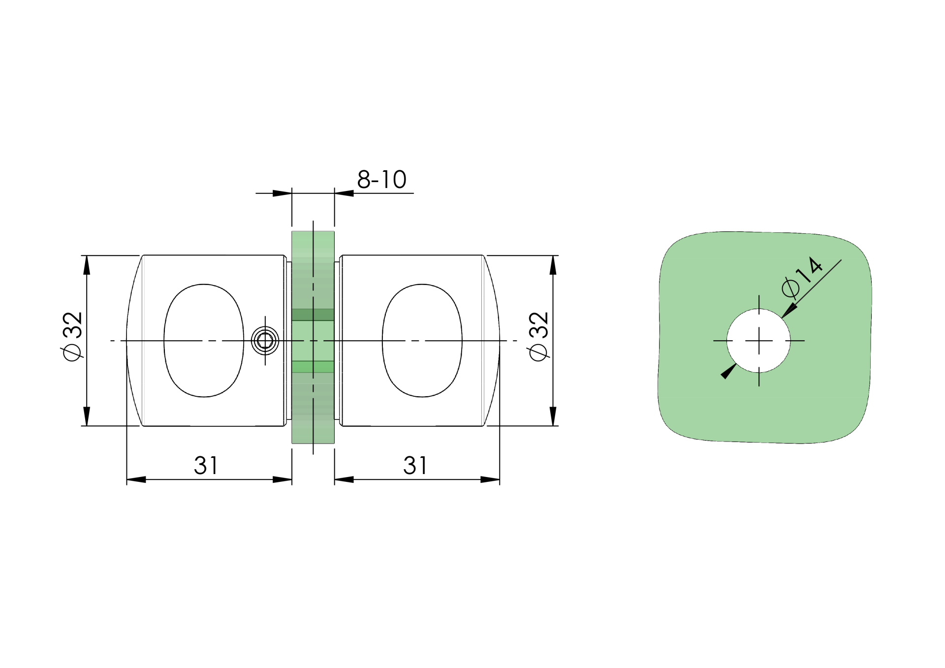 Material: Edelstahl AISI 304, Oberflächengüte: Schliff, Glass t: 8-12, Loch im Glas: Ja