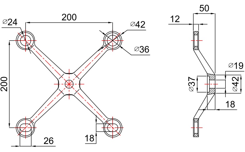Permissible axial arm load (reciprocal of the wind load) - 2100N Radial load caused by the weight of glass - 1000N