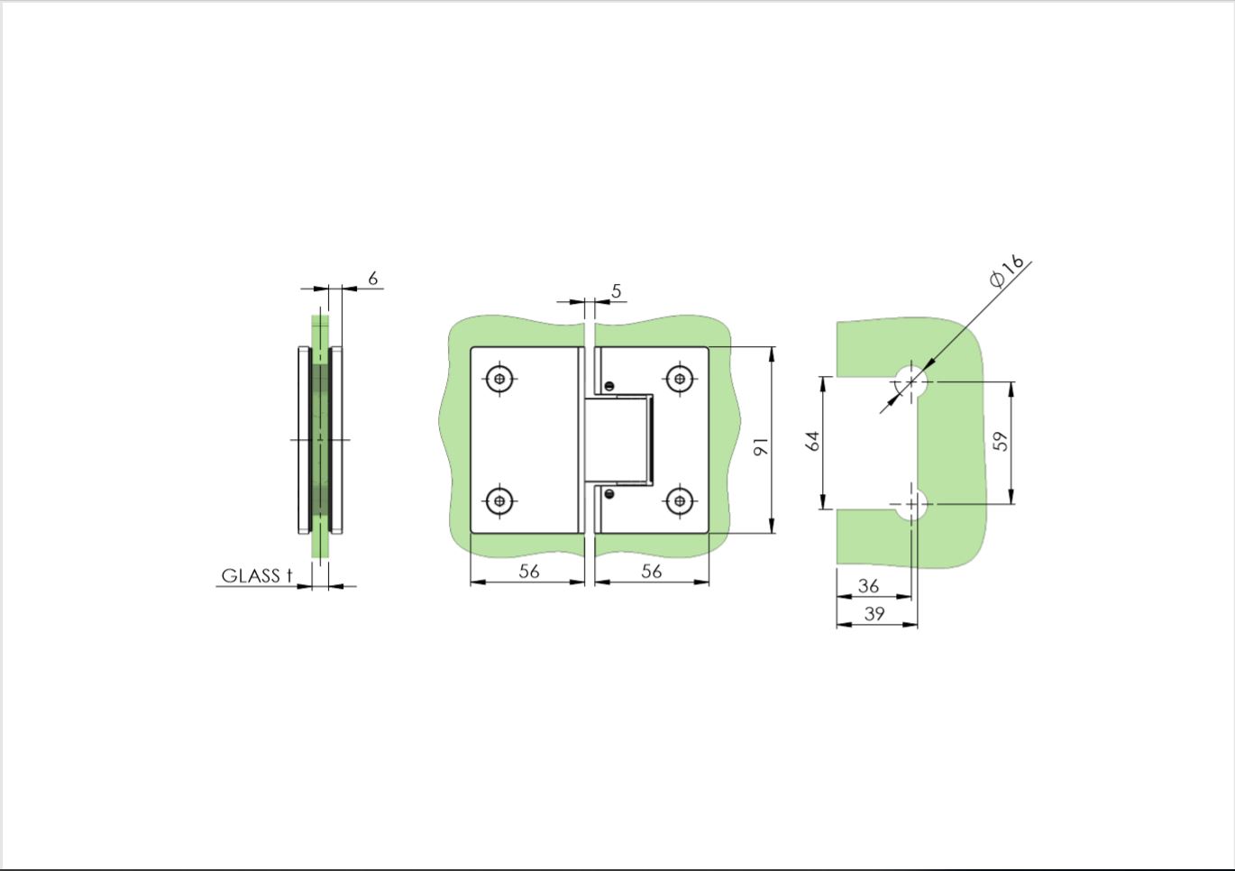 Material: Messing, Oberflächengüte: Schliff, Glass t: 8-10, Fülle: Glas, Gmax(kg)/2pcs: 45, Verankerung: Wand, Möglichkeit, die Standardposition der Tür: ± 20°, Selbstschließender Mechanismus: +-25°, Stopp-Funktion: +-90°/0°, Loch im Glas: Ja