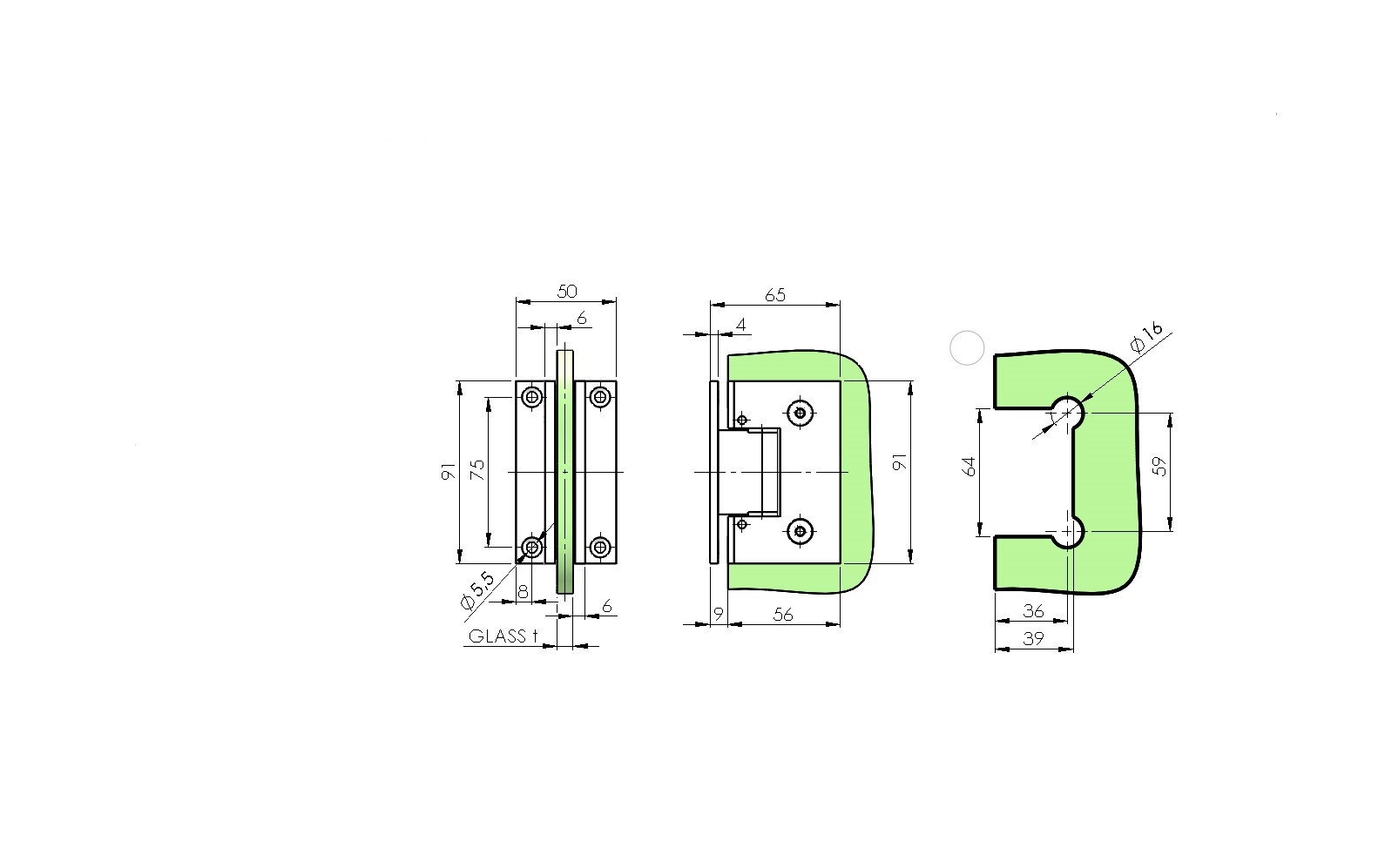 Startseite » Glas und Türsysteme » Scharniere für schwingtüren » Scharniere für schwingtüren flex PRO » Glastürscharnier +/- 90° - Montage Glas/Wand flex