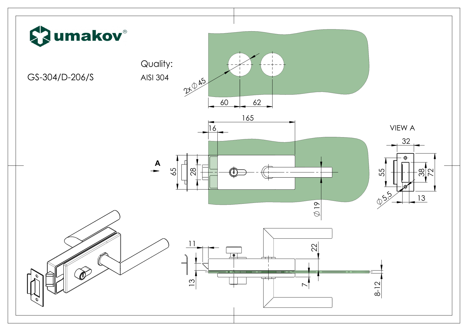 Verriegelungsteil für Glastür GS-304/D-206/S