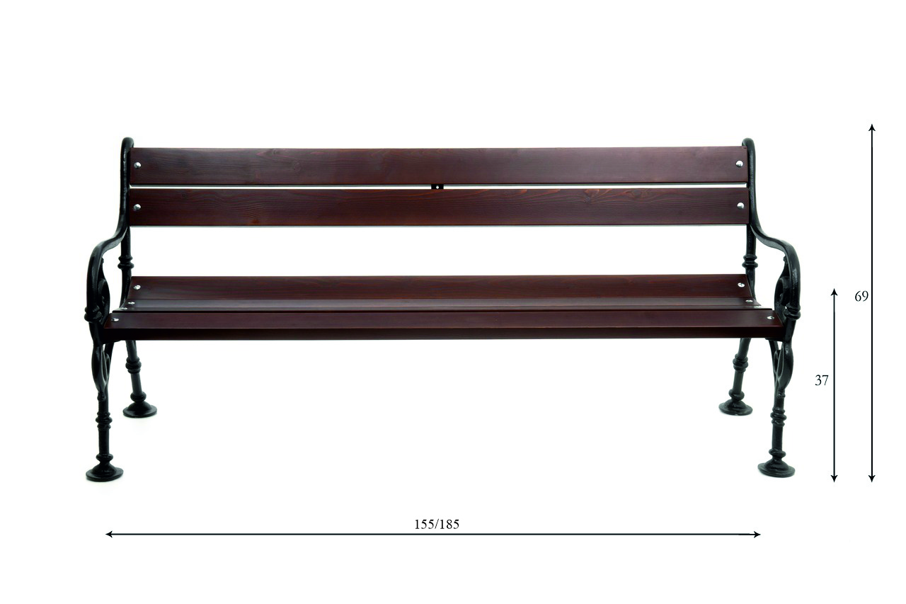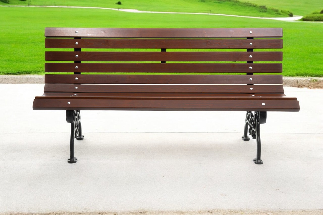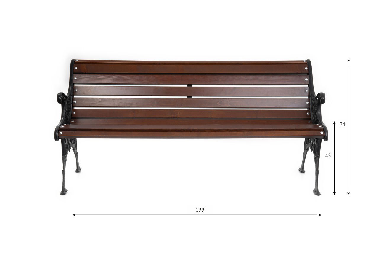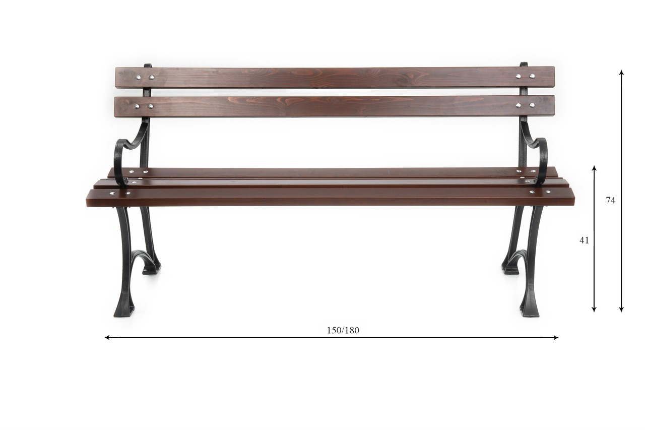 Moderne, stilisierte Parkbänke sind freistehende Produkte, die bei Bedarf am Boden befestigt werden können. Bänke werden aus Gusseisen mit Liebe zum Detail, ohne dabei auf ein auffälliges Finish zu vergessen, hergestellt. Die verwendeten Dekorationen machen die Parkbank zu einem originellen Element der Gestaltung des öffentlichen Raums in Stadt, Park und Garten. Sitzfläche und Rückenlehne bestehen aus Holz, wodurch sich die Bank harmonisch in die Anordnung der von der Natur umgebenen Bereiche einfügt.- Lieferumfang: 1x Parkbank Komplett zur Selbstmontage inkl. Schrauben