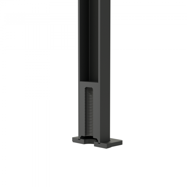 2. TR1 X25 GW Baluster– Balustrade mit Fixierfuß zum Aufschrauben auf das im Boden installierte M10-Gewinde. Bei der Montage wird der Fuß gegen die Balustrade gedrückt und dient als Stabilisator und Positionierer – seine sekundäre Funktion besteht darin, optische Mängel, die durch die Verankerung entstehen, zu kaschieren. Die Stabilität der Balustrade wird durch die feste Verschraubung mit dem Boden erreicht.