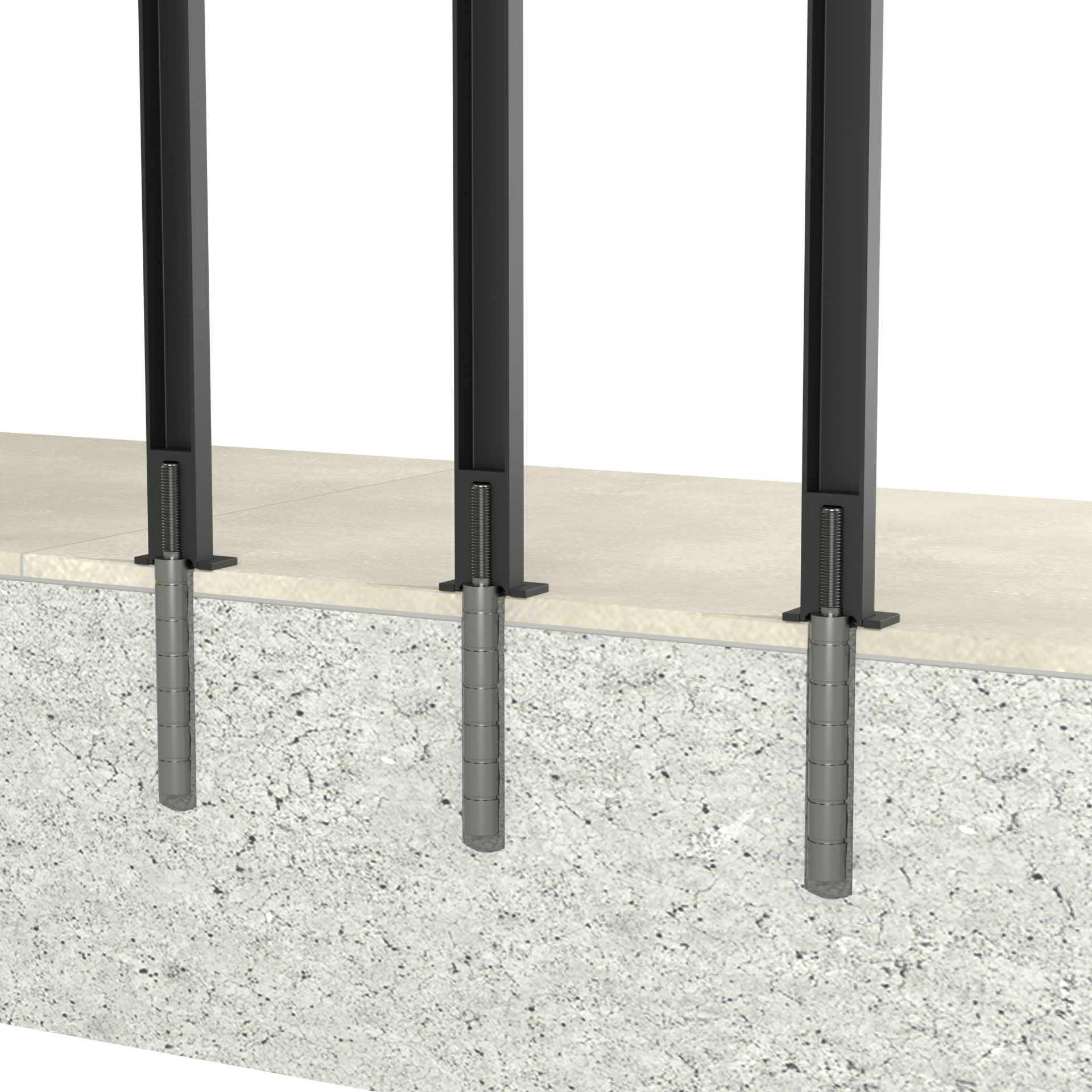 Im Betonuntergrund muss ein Loch mit einem Durchmesser von 18–20 mm vorbereitet werden, in dem ein Stahlanker mit 16 mm Durchmesser mit Injektionsmörtel (exklusiv) chemisch verankert wird.