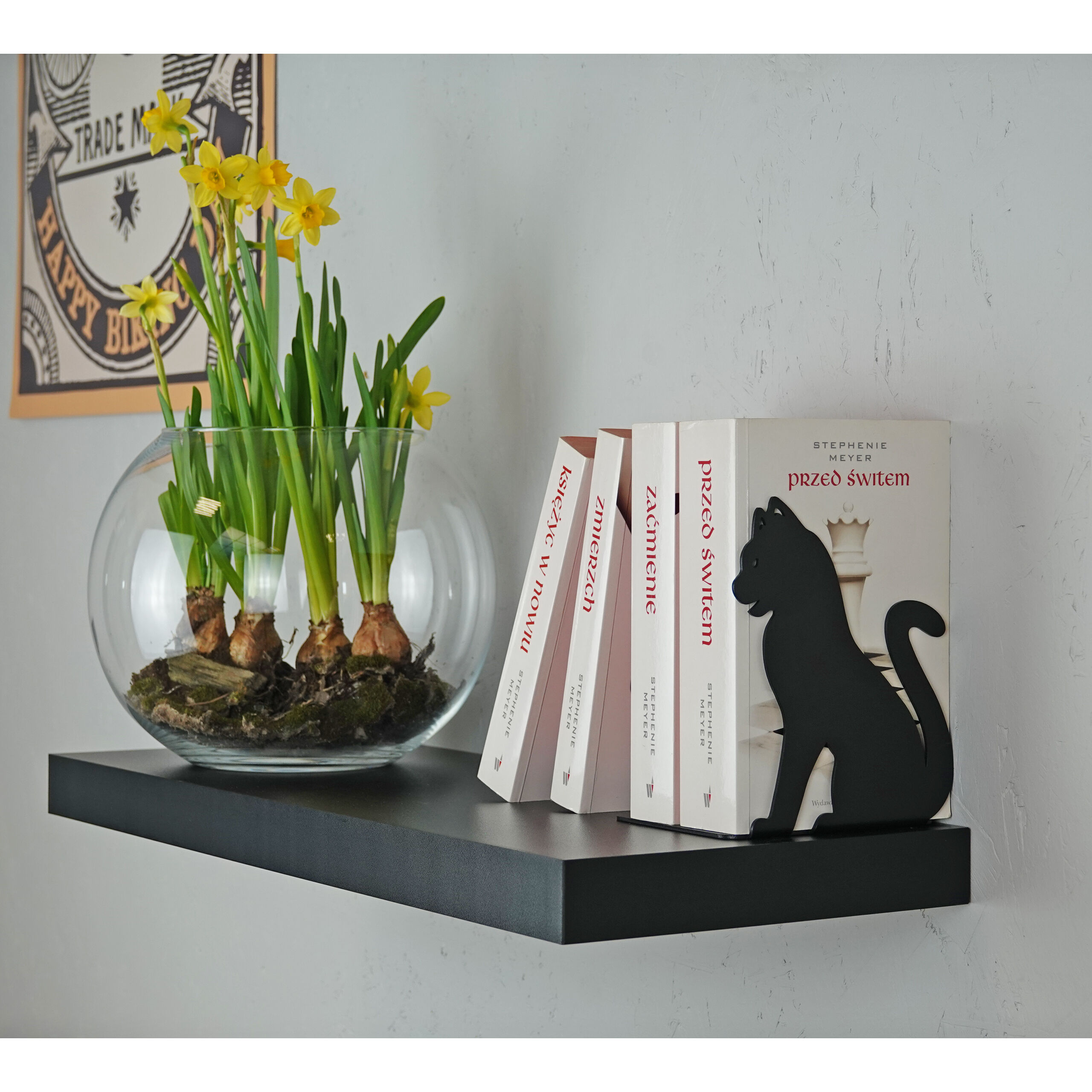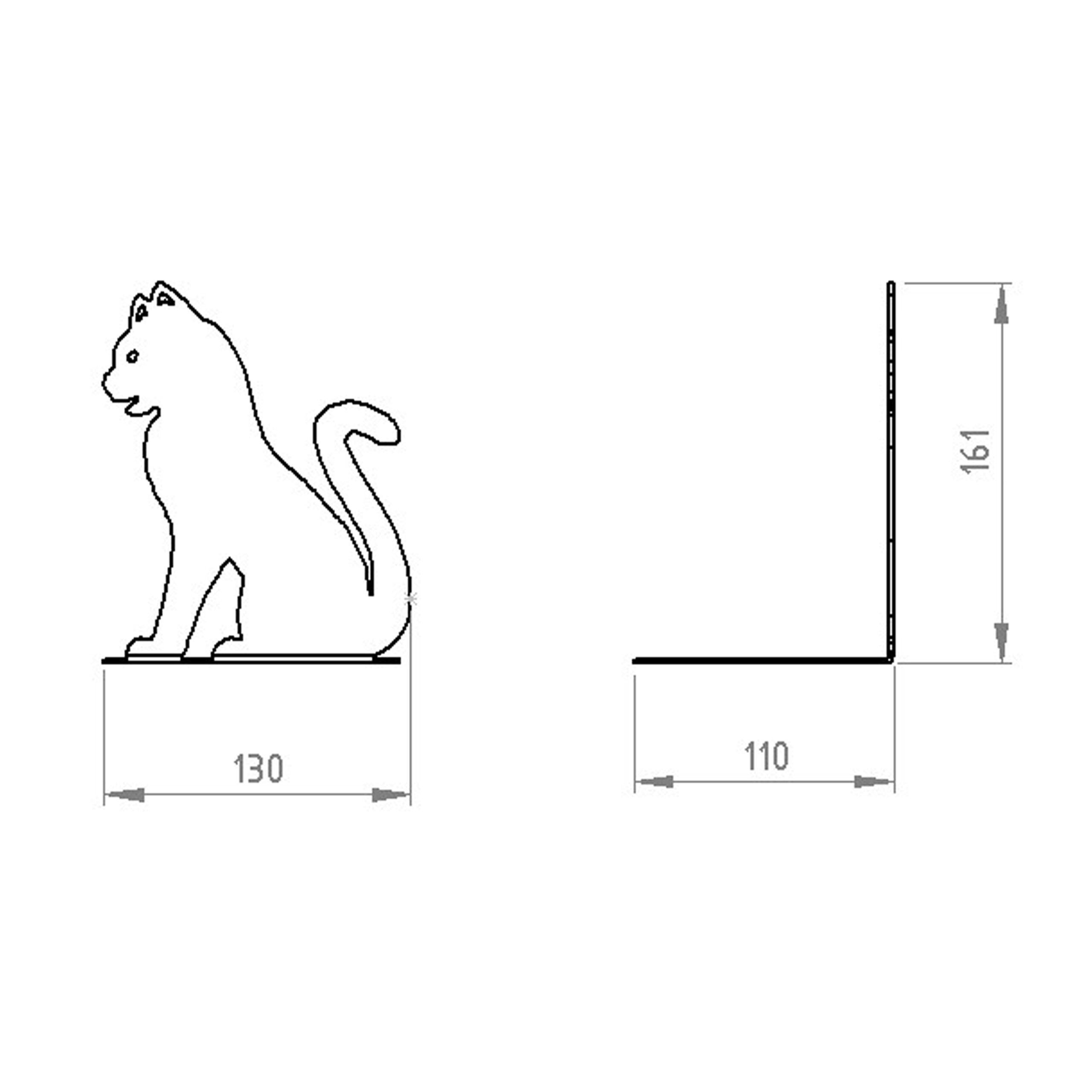 Die Buchstütze KATZE-4 ist ein perfektes Geschenk für jeden Liebhaber schnurrender Vierbeiner. Seine schlichte Form passt besonders zu Räumen, die im minimalistischen Stil eingerichtet sind. Diese Buchstütze aus Stahl sorgt für Ordnung in Ihrem heimischen Bücherregal, verhindert das Umkippen der Bücher und schützt sie vor Beschädigungen. Es wird ein interessanter Akzent in Lesesälen und sogar in kürzlich beliebten Katzencafés sein. Die Buchstütze KATZE-4 besteht aus einem einzigen Stück 2 mm dickem Stahl. Es ist nicht geschweißt oder verdreht, wodurch es ästhetisch ansprechend aussieht. Das Schneiden mit Lasertechnologie gewährleistete eine hohe Genauigkeit jedes Details. Die Pulverbeschichtung sorgt für eine satte Farbe und eine Struktur, die sich nicht nur angenehm anfühlt, sondern auch leicht zu reinigen ist.