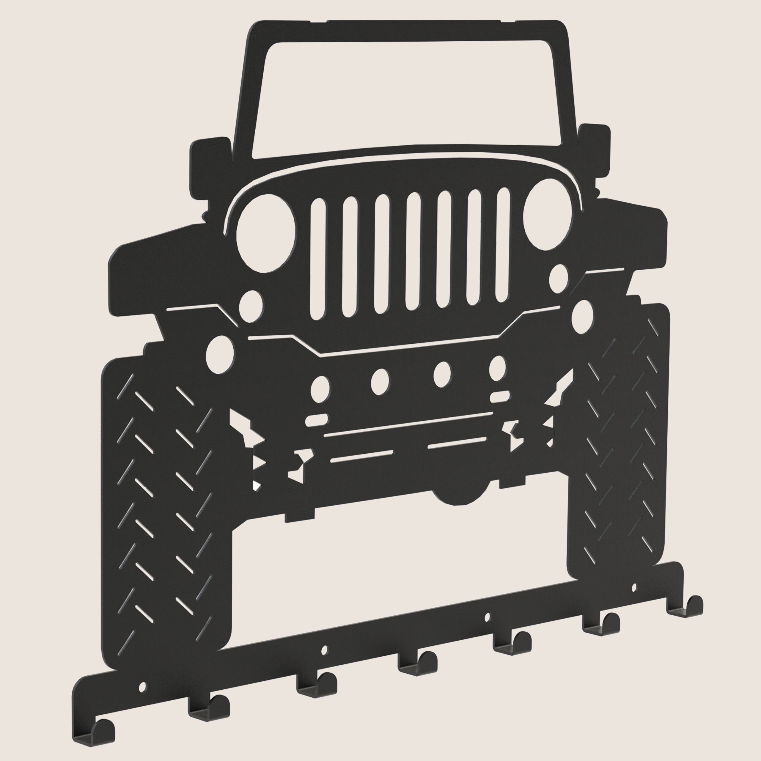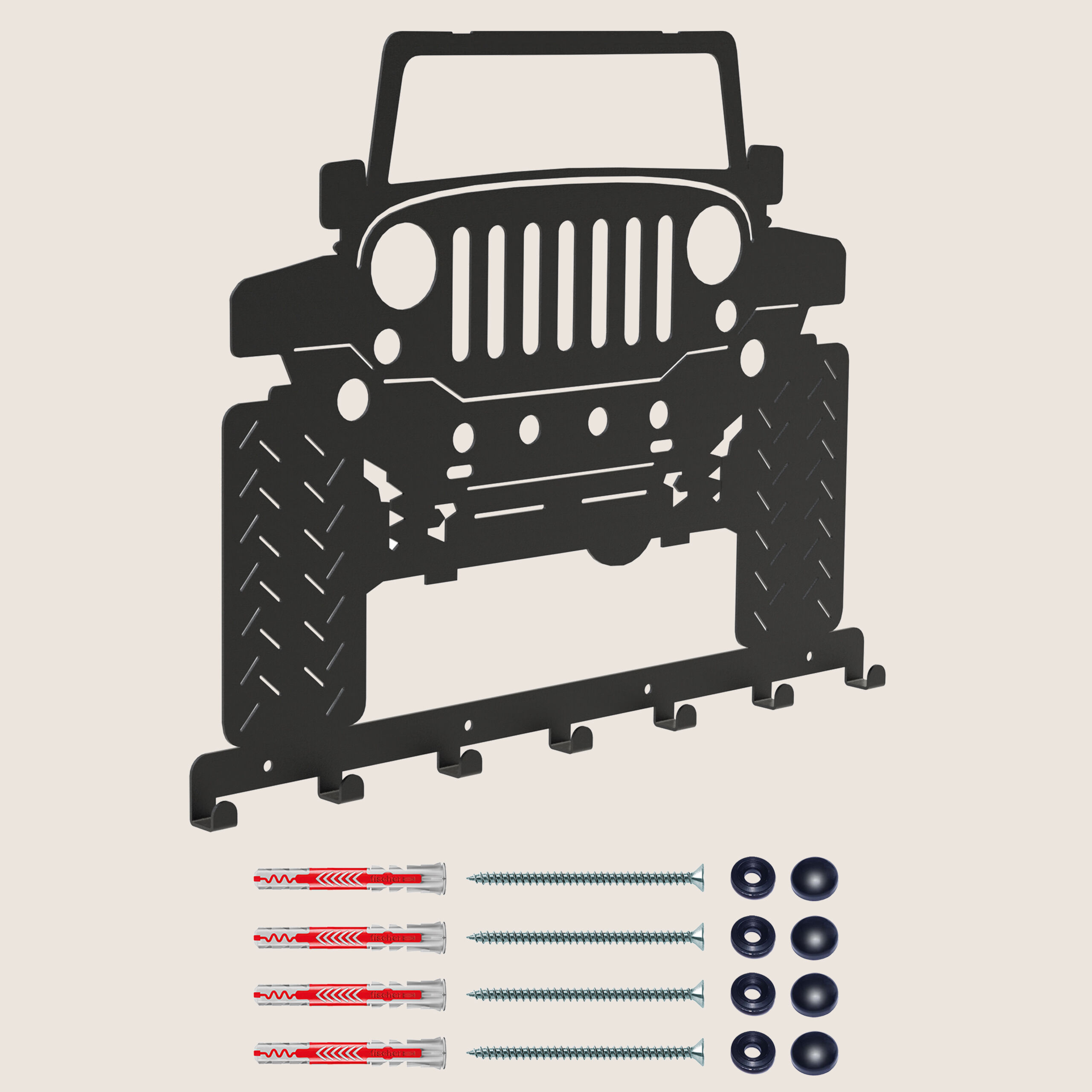 Der Kleiderbügel AUTO 3 TERRAIN ist der „große Bruder“ des Schlüsselanhängers mit dem gleichen Motiv. An sieben Haken können hängende Kleidung und Accessoires wie Schals, Tücher oder Mützen befestigt werden. Aufgrund seiner Maße ist es repräsentativ und macht an der Wand im Flur, im Büro oder in der Garderobe eine schöne Figur. Seine universelle Farbe passt zu vielen Untergründen, insbesondere zu den neuerdings in Mode gekommenen Grau- oder Weißtönen.