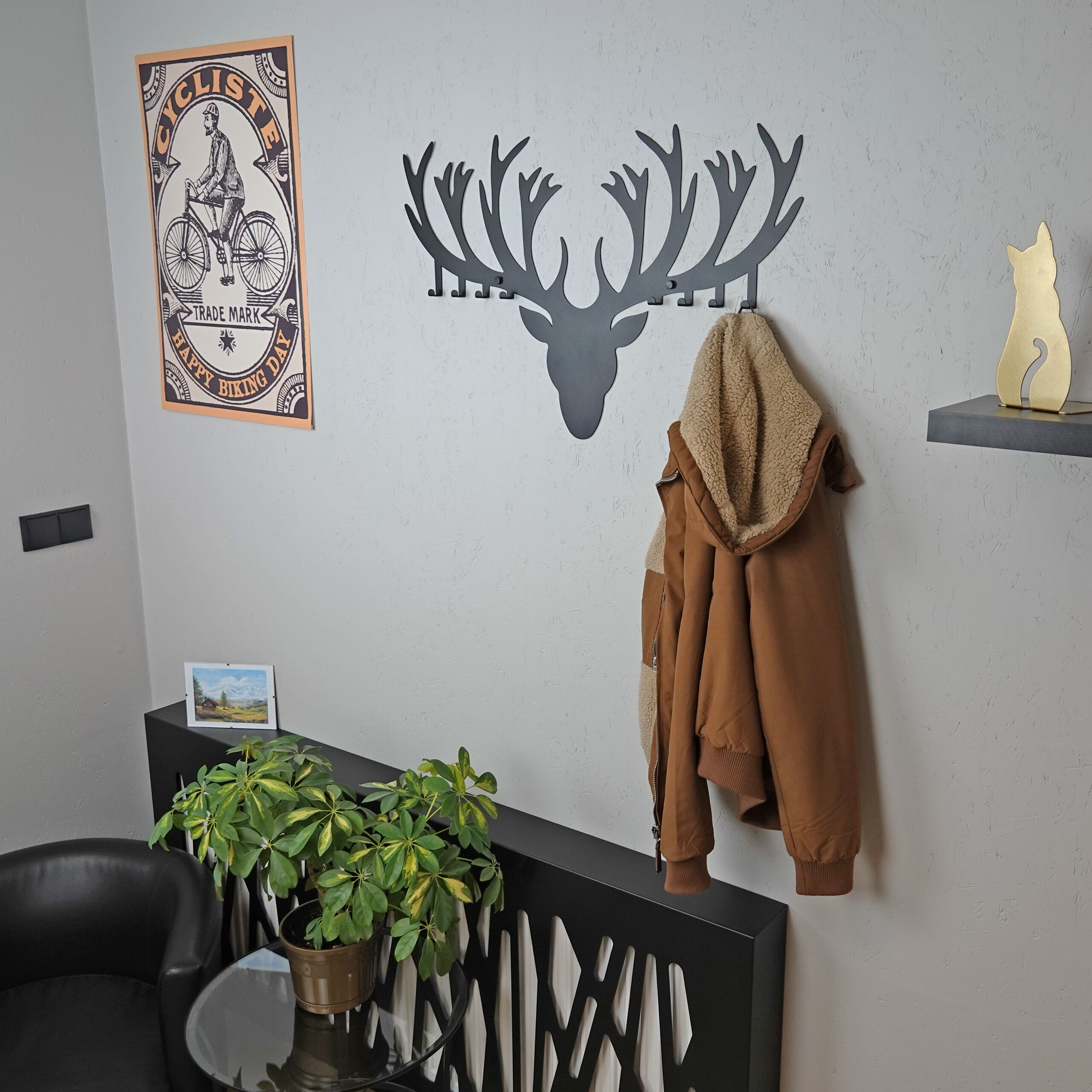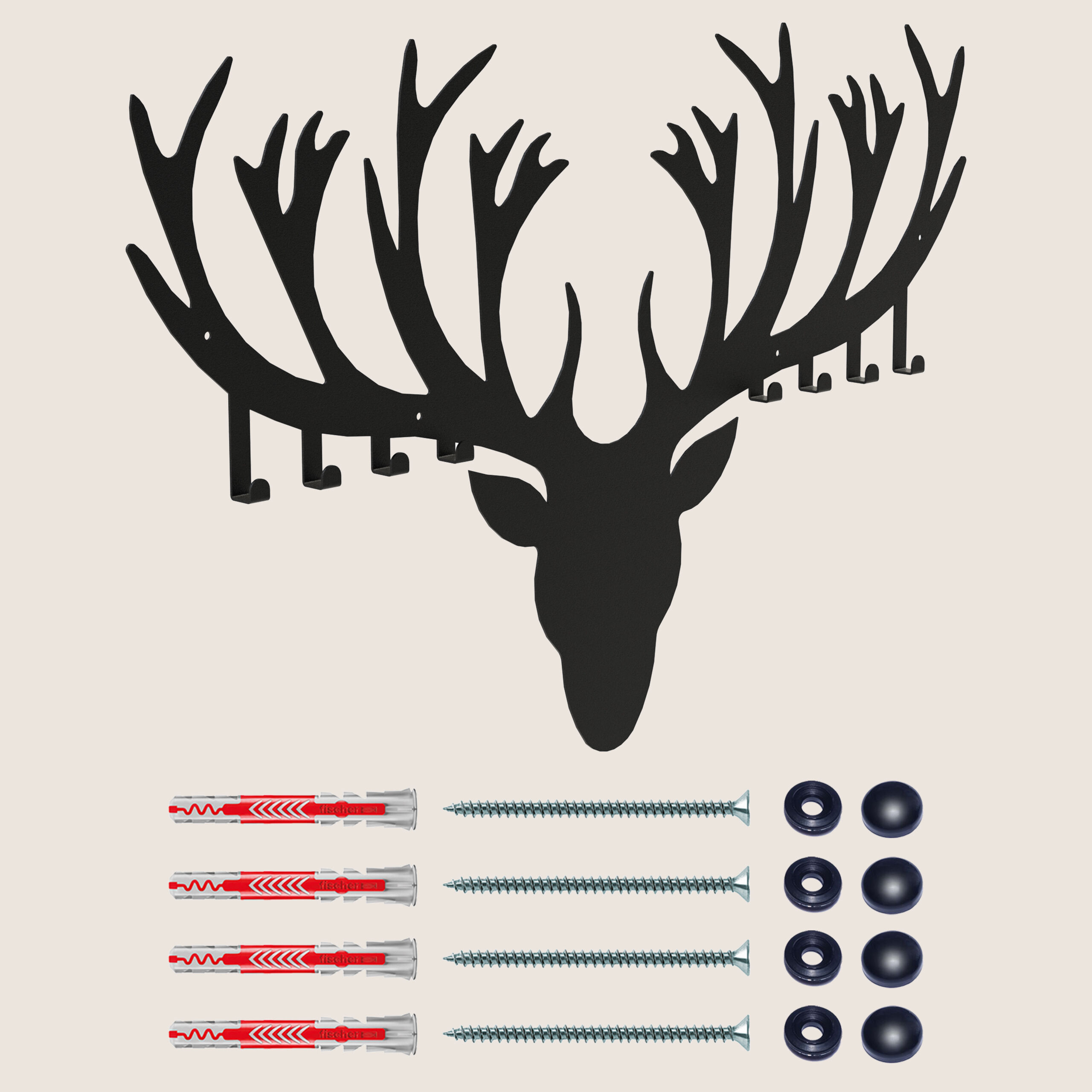 Startseite » Möbel & Wohnen » Deko & Accessoires » Wandaufhänger und Griffe » Garderobenhaken » Kleiderhaken Kleiderbügel Garderobenleiste Haken Schwarz Tier Wild aus Metall, für Eingang, Flur, Schlafzimmer, Flurgarderobe mit 8 Haken / HIRSCH