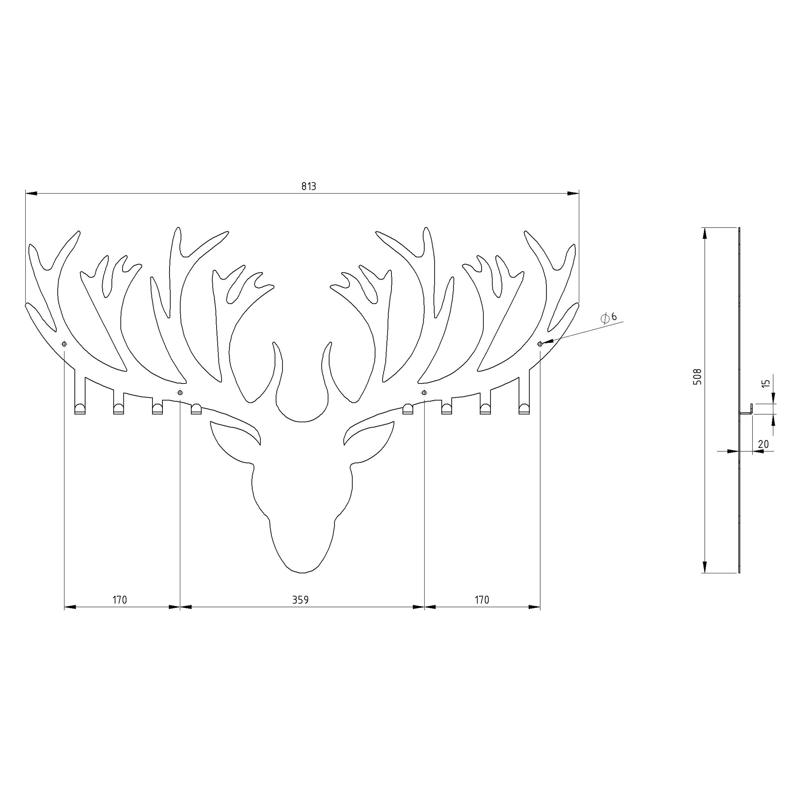 Der Kleiderbügel HIRSCH ist aus einem Stück hochwertigem Stahl gefertigt. Es ist nicht geschweißt oder verschraubt, weshalb es ästhetisch ansprechend aussieht. Es ist robust und solide. Alle Details wurden mit größter Sorgfalt ausgeschnitten und das Produkt selbst vor Kratzern und Korrosion geschützt. Der HIRSCH-Kleiderbügel ist ein Produkt zur Selbstmontage. Passende Befestigungsstifte und Schrauben sind im Lieferumfang enthalten.