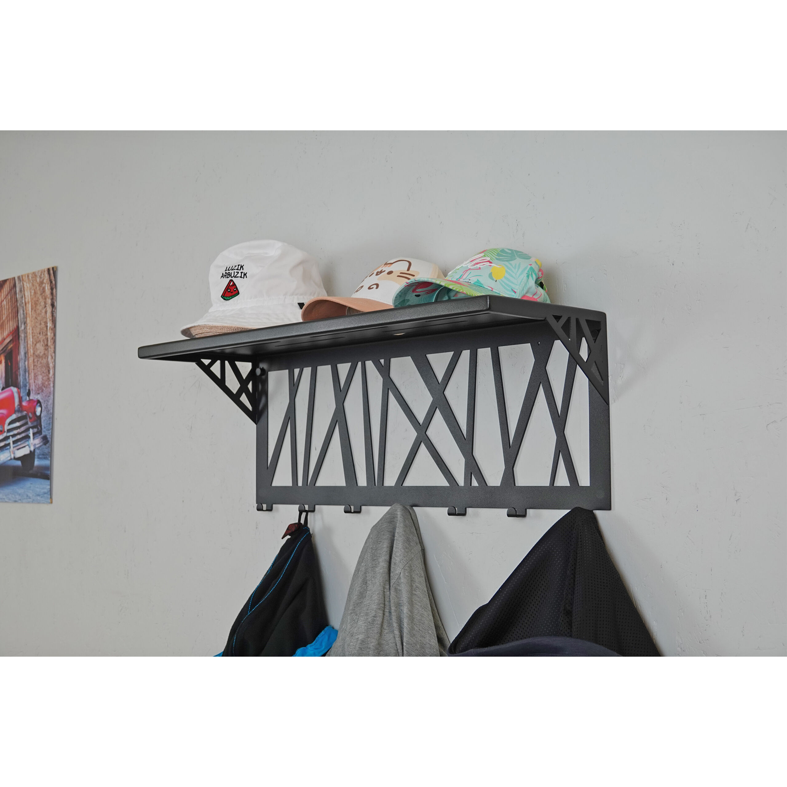 Startseite » Möbel & Wohnen » Deko & Accessoires » Wandaufhänger und Griffe » Kleiderbügel mit Ablage » Kleiderhaken Garderobenleiste Hakenleiste Schwarz mit Ablage - 70 cm - aus Metall, für Eingang, Flur, Schlafzimmer, Flurgarderobe mit 7 Haken / W-1