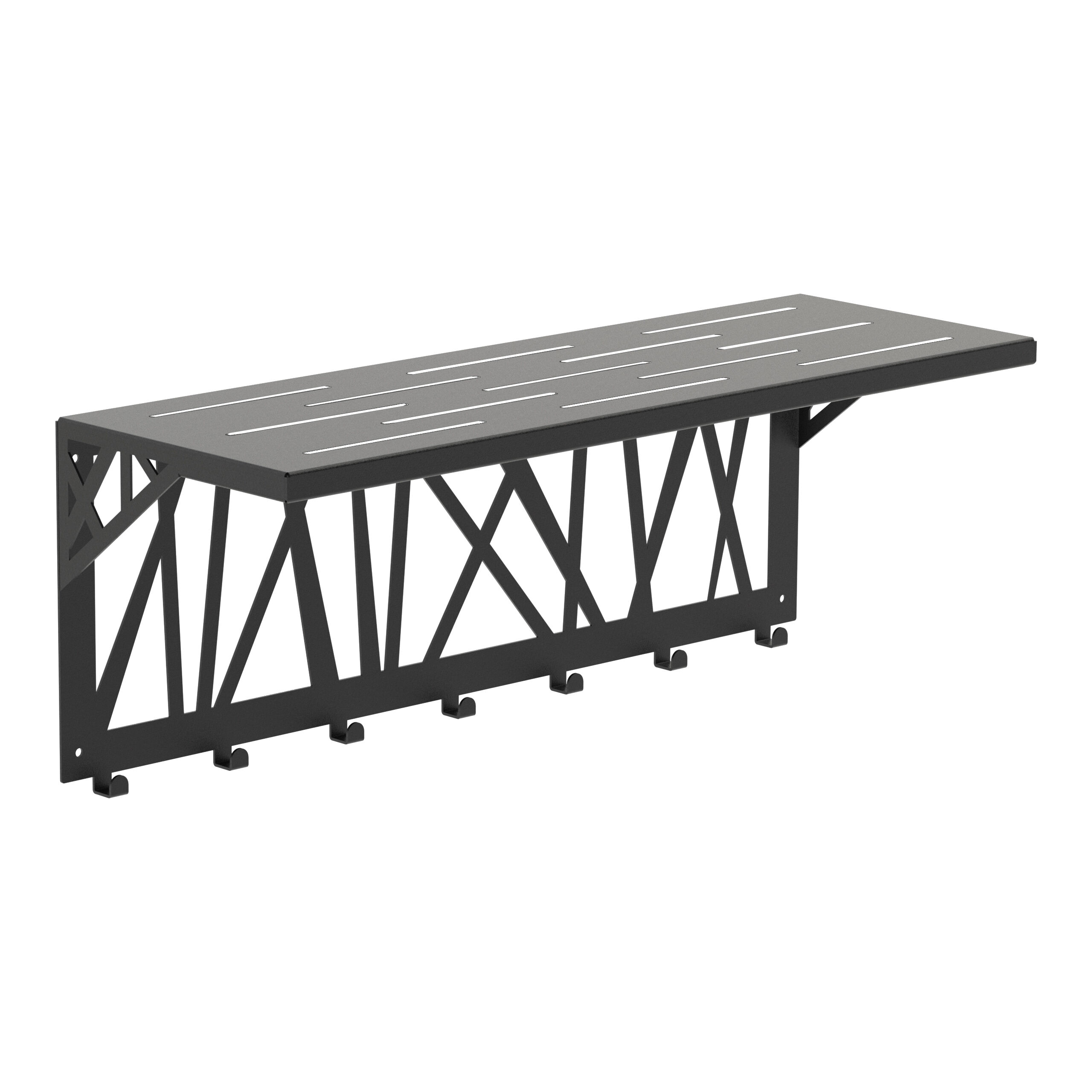 Der Wandhalter für Kleidung mit Regal W-1 besteht aus 2 mm dickem, lasergeschnittenem Stahl. Dank der Verwendung dieser Schneidtechnologie sind alle Details äußerst präzise. Durch die Pulverbeschichtung wurden eine tiefe Farbe und eine glatte Struktur erreicht. Der Wandhalter für Kleidung mit Regal W-1 ist ein Produkt zur Selbstmontage, daher bringen wir Schrauben und Befestigungsstifte am Kleiderbügel an.
