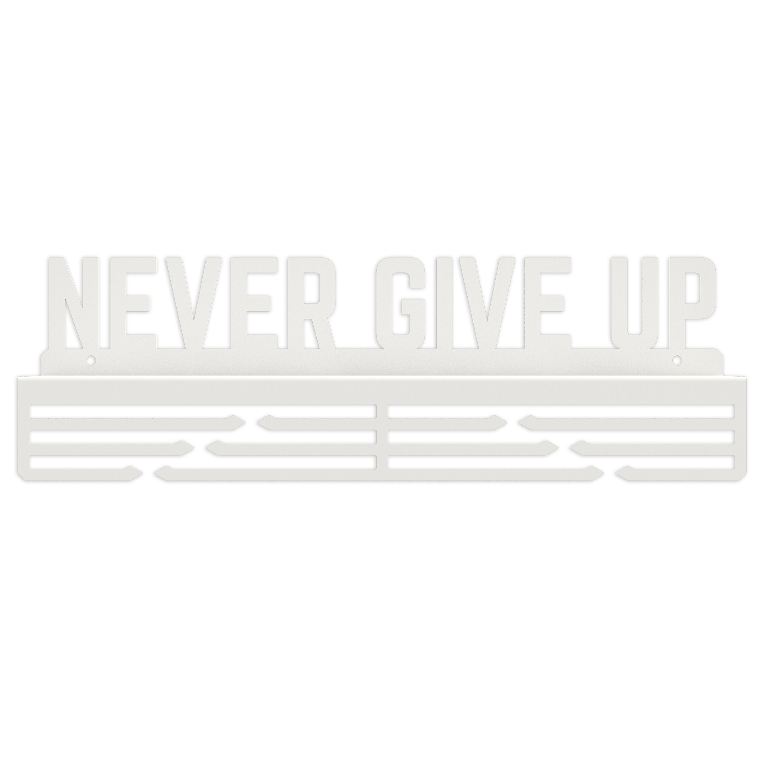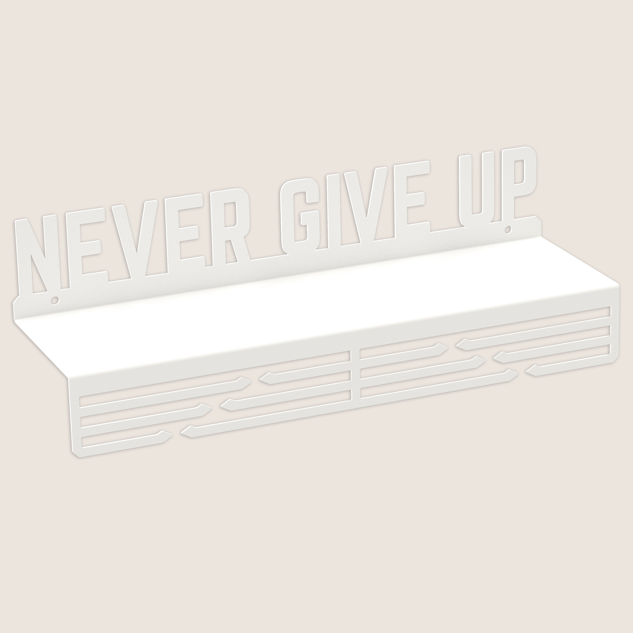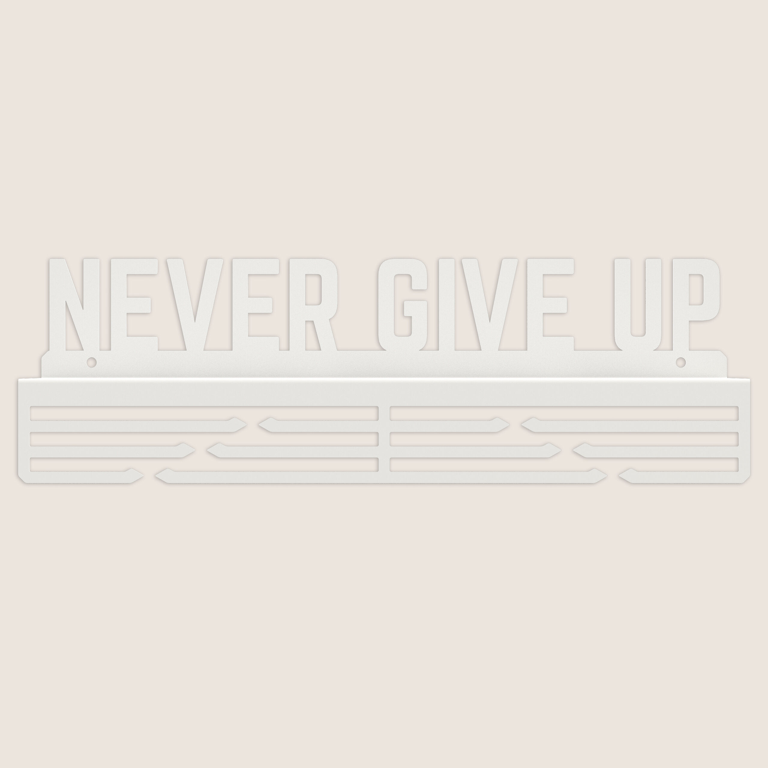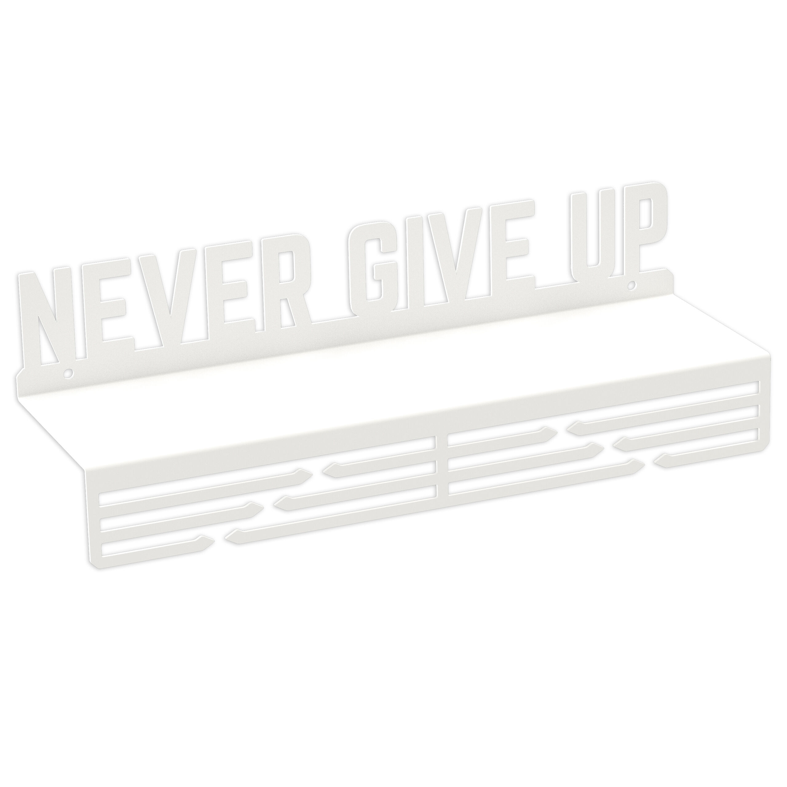 Startseite » Möbel & Wohnen » Deko & Accessoires » Wandaufhänger und Griffe » Medalienhalter » Medaillenhalter Medaillenaufhänger Metall WEIß Bügel mit Regal Wandmontage Geschenk / NEVER GIVE UP