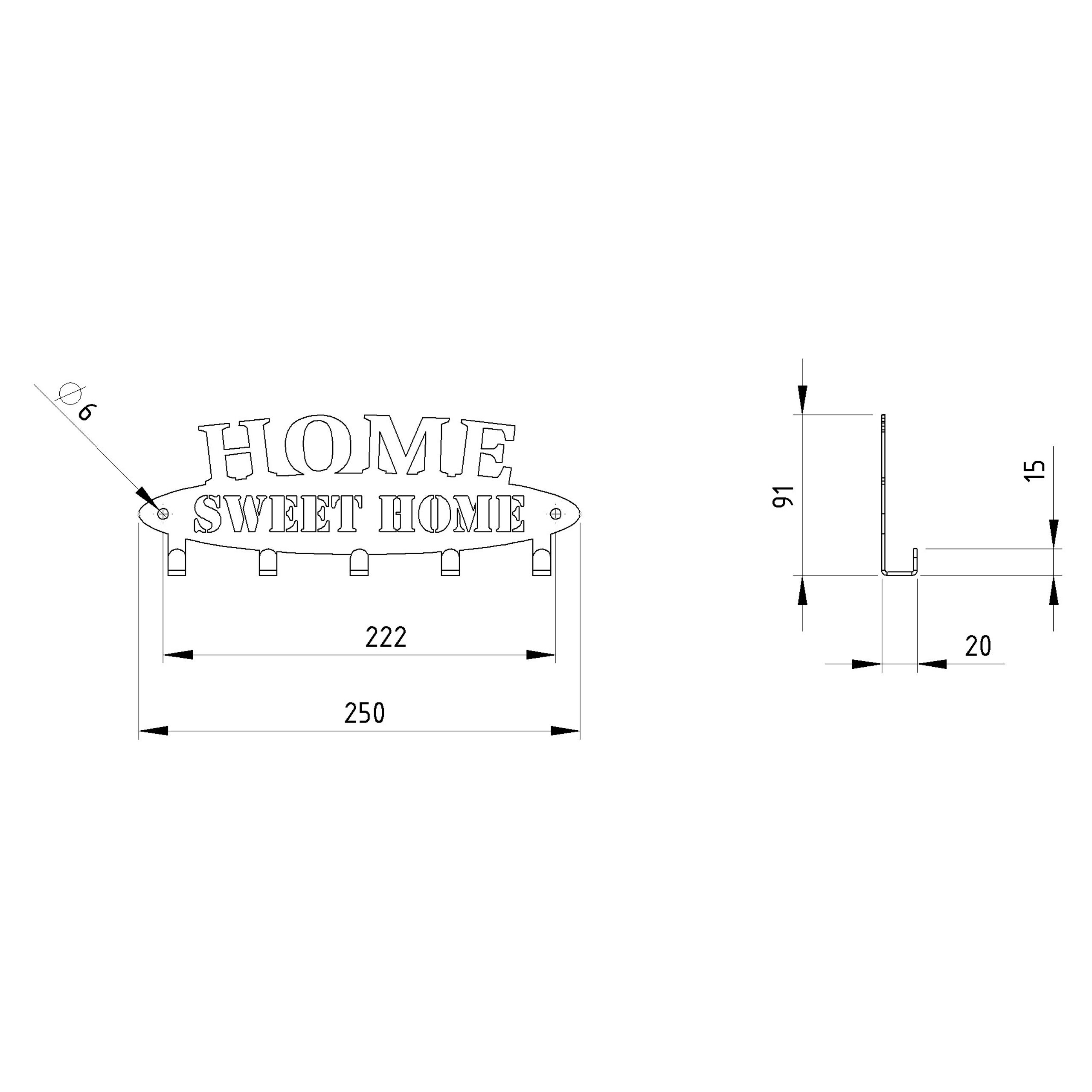 Der HOME-Schlüsselanhänger besteht aus 2 mm dickem Stahl. Die Aufschrift wurde mit einem Laser geschnitten, wodurch jedes Detail präzise wiedergegeben wird, und die ausdrucksstarken Buchstaben bilden einen Kontrast zur Oberfläche, auf der diese interessante Ergänzung angebracht wird. Der Kleiderbügel ist ein Produkt zur Selbstmontage, daher liegt der Bestellung ein Satz Befestigungsstifte und Schrauben bei.