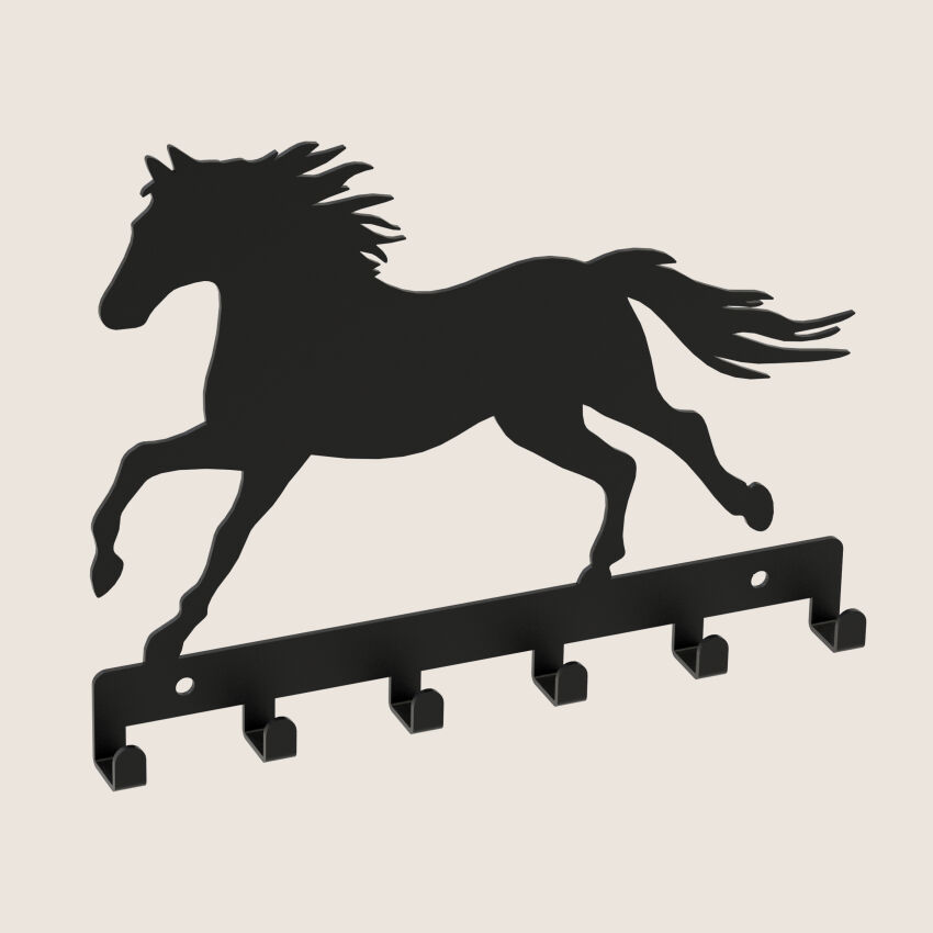 Der Schlüsselanhänger HORSE ist aus einem einzigen Stück lasergeschnittenem 2 mm dickem Stahl gefertigt. Dadurch ist es langlebig und alle Details wurden mit größter Sorgfalt und Präzision ausgearbeitet. Die Pulverbeschichtung sorgte für eine schöne Farbe und eine angenehm anzufassende Struktur und schützte den Kleiderbügel vor Kratzern. Wir legen der Bestellung die richtige Menge an Befestigungsstiften und Schrauben bei, sodass die Montage des Produkts selbst durchgeführt werden kann.