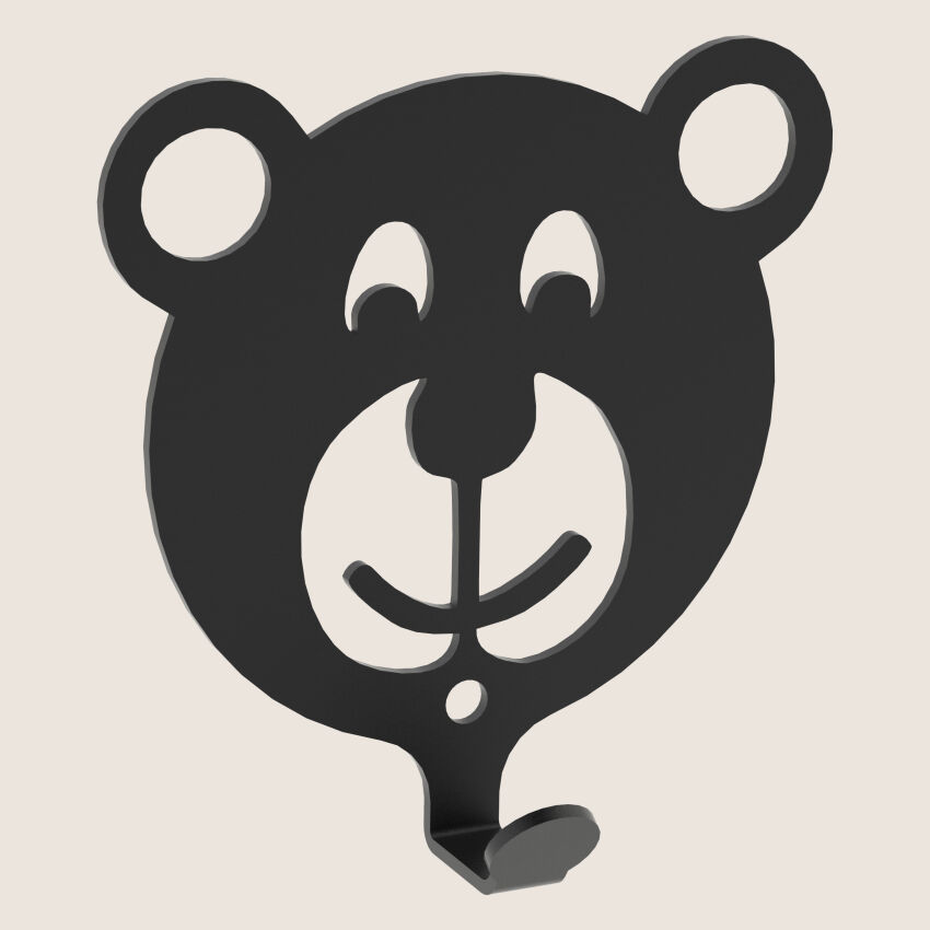 Kleiderhaken Kleiderbügel Kinder Haken Schwarz Tiere aus Metall, für Eingang, Flur, Schlafzimmer, Kinderzimmer Kindergarten / TEDDYBÄR