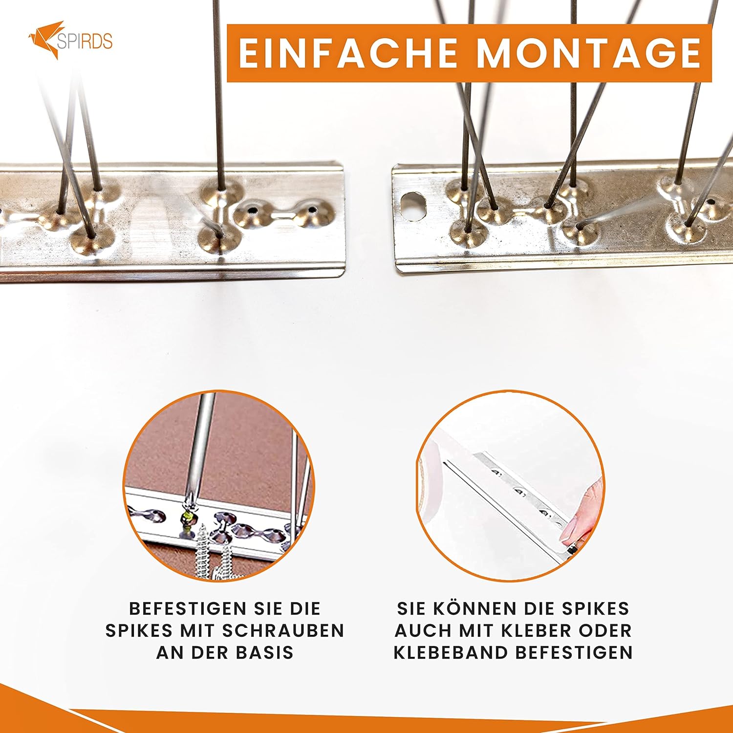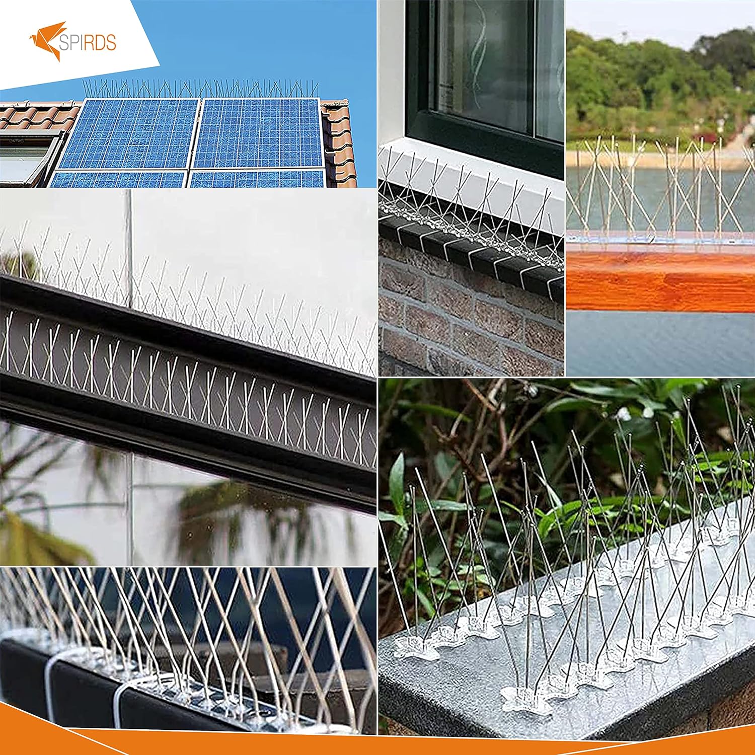 SPIRDS 10m (20x50 cm) Balkon-Taubenabwehr, Vogelabwehr zum Schutz von Blumenkasten Fensterbank, Taubenabwehr-Spikes 5-Reihig Rostfreier Stahl