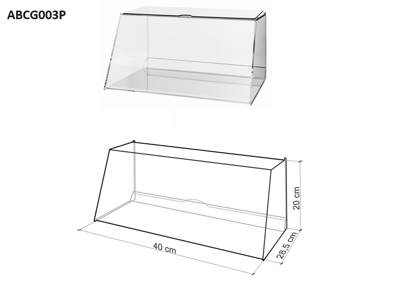 Dank seiner robusten Konstruktion und präzisen Verarbeitung garantiert unser Behälter Langlebigkeit und Zuverlässigkeit, was in der Verkaufsbranche äußerst wichtig ist. Durch die transparenten Wände können die Kunden die leckeren Hefekuchen, das appetitliche Gebäck und die farbenfrohen Bonbons bewundern, was das Auge anzieht und die Attraktivität des ausgestellten Sortiments erhöht.