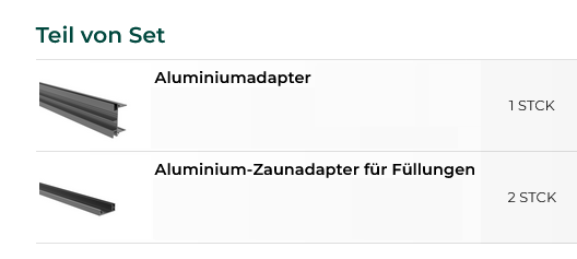1 x Adapter, 2 x Abdeckschiene