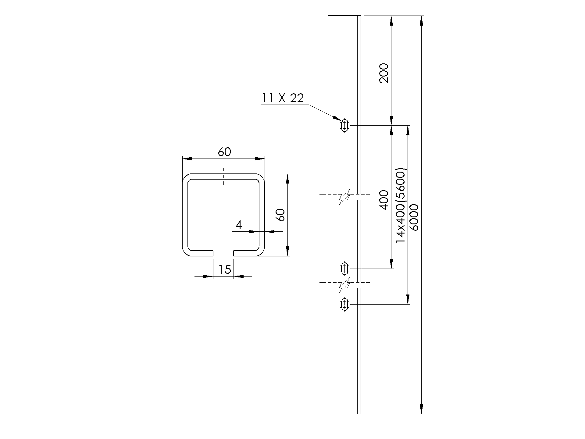 Führungsprofil mit Löchern Zn, 60x60x4mm, L6m