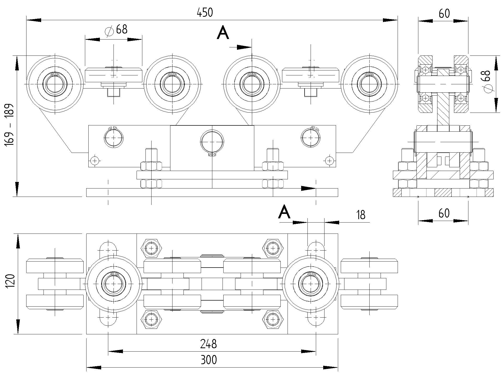 Startseite » Torzubehör » Cantilever-Systeme » Rädern » Rädern profiltyp C » 10-rädriger Laufwagen für selbsttragenden Tor Zn,