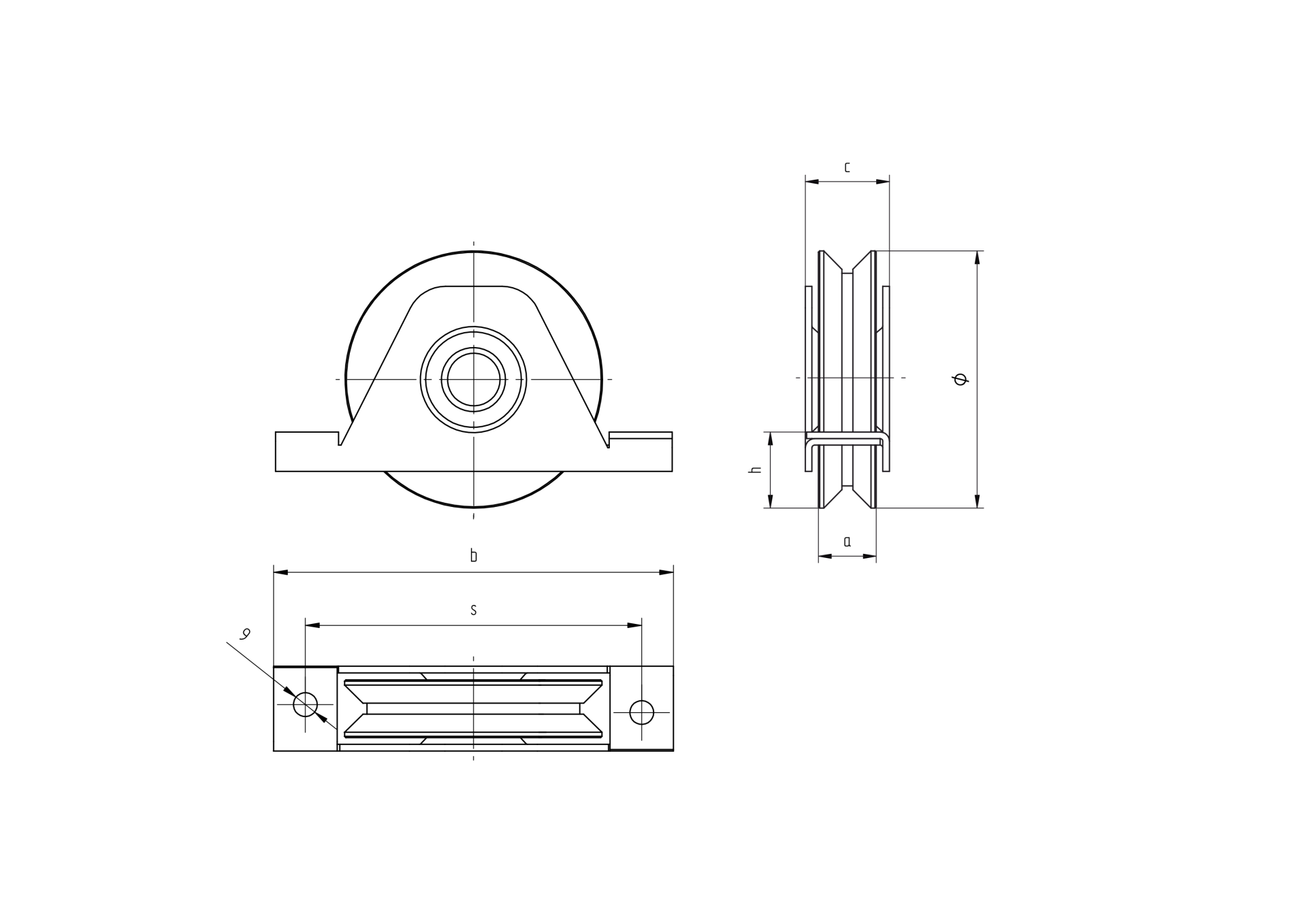 Laufrolle mit „v“ profil mit stütze und lagerD80mm