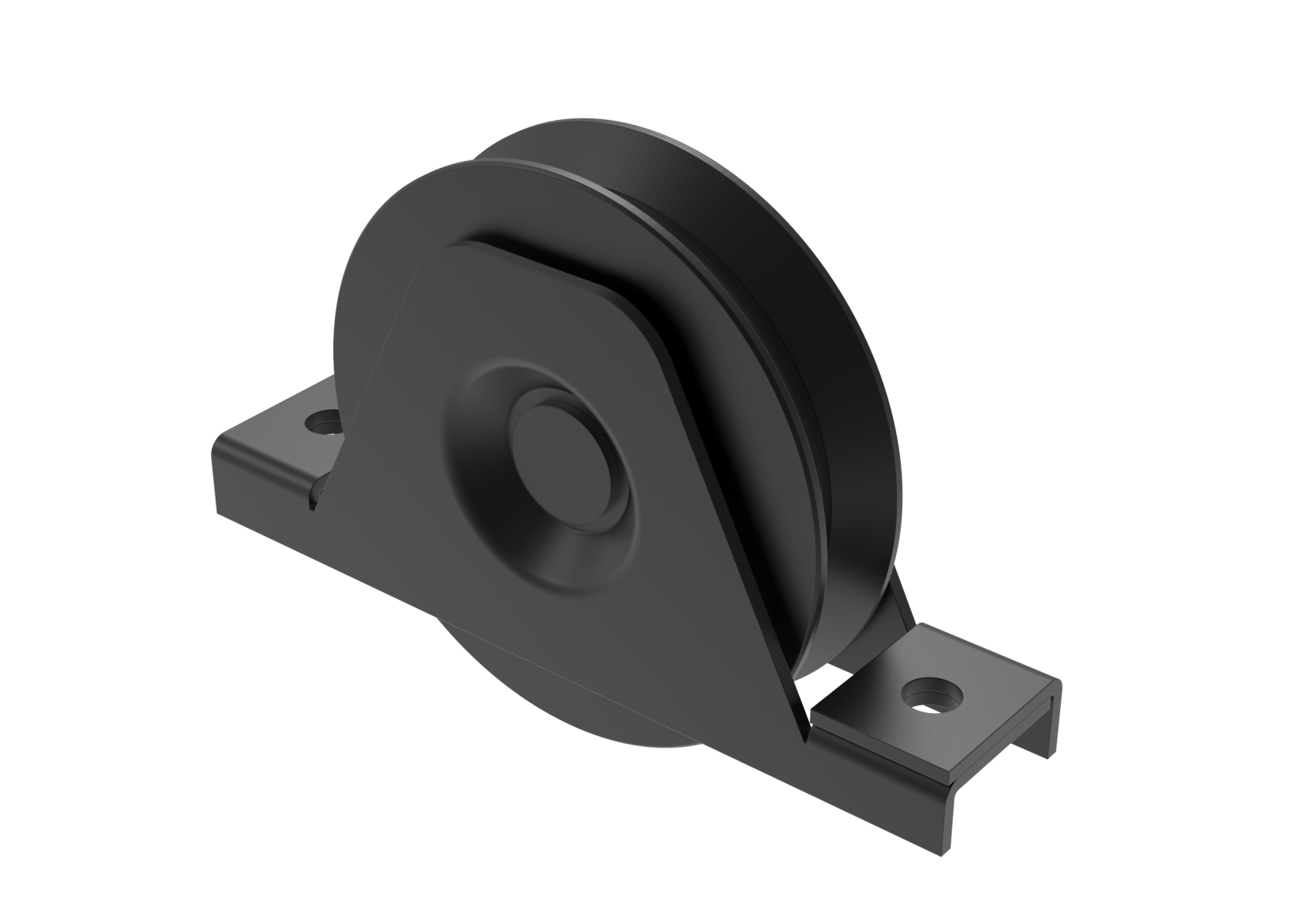 Startseite » Torzubehör » Rädern und Schienen » Rädern V » im Rahmen montieren » Schiebetorrolle mit Außenstützplatte und V-Rille Zn, Schwarz