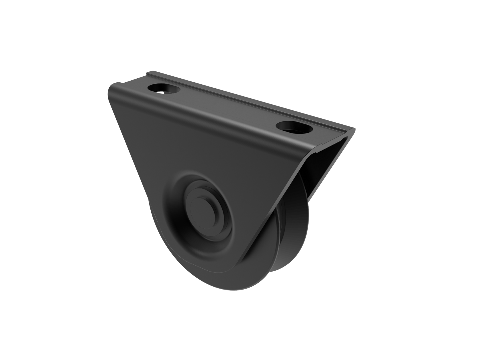 Startseite » Torzubehör » Rädern und Schienen » Rädern V » Montage unter dem Rahmen » Schiebetorrolle mit Außenstützplatte und V-Rille D80, Schwarz