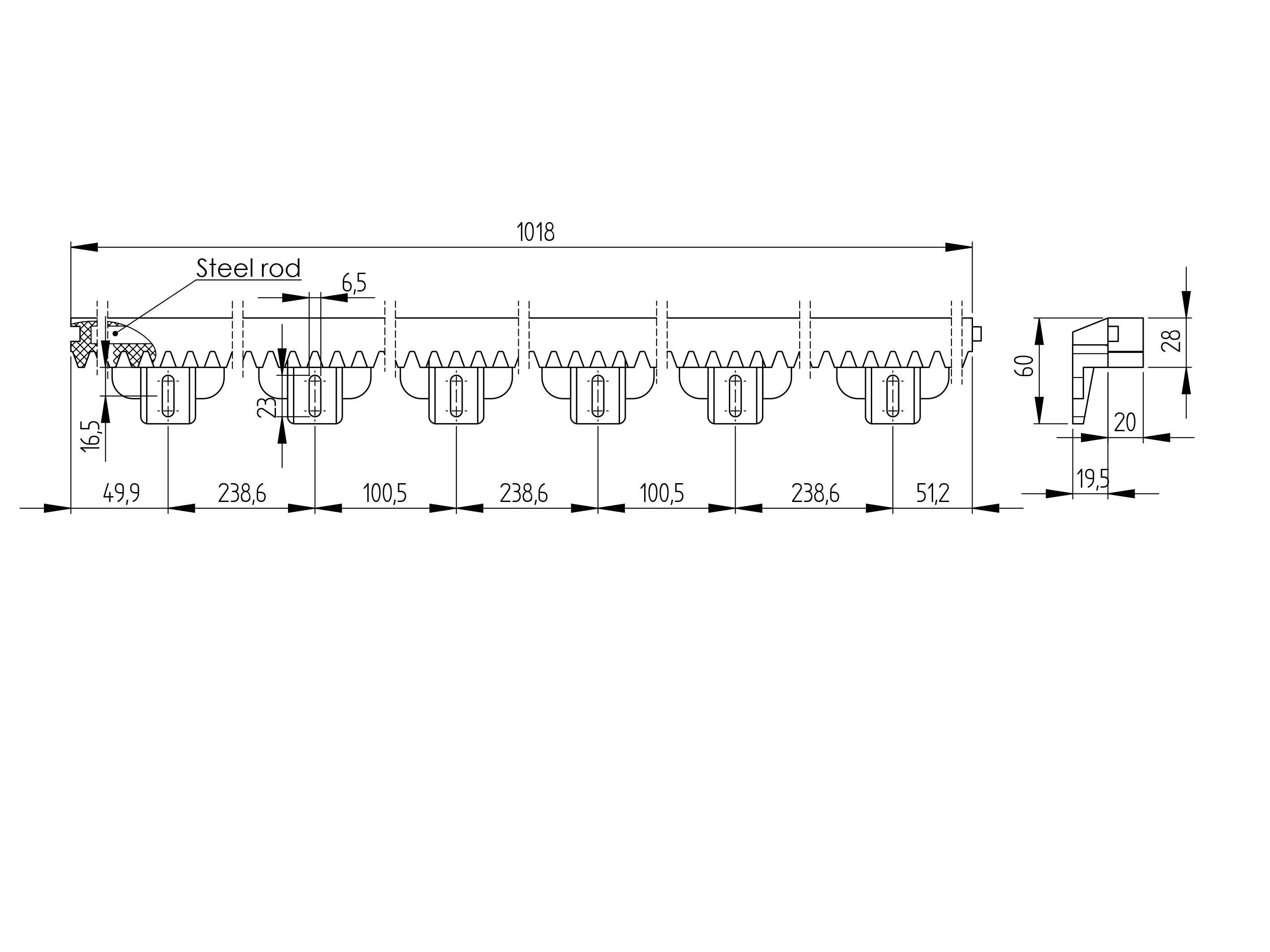 Startseite » Torzubehör » Zahnstangen » Kunststoff-Zahnstange » Kunststoffzahnstage mit Stahlkern PVC+Fe,27x20mm,L